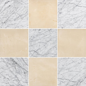 Bianco Carrara & Crema Marfil 12" Checkerboard Honed
