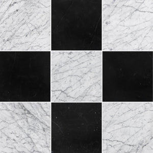 Bianco Carrara & Black Marble 12" Checkerboard Honed