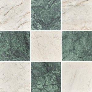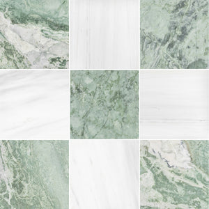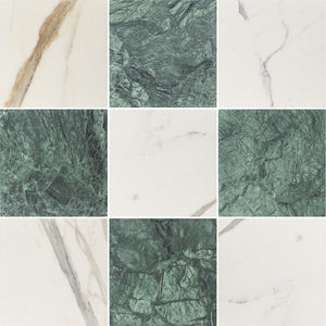 Emerald Green & Calacatta Green 12" Checkerboard Honed