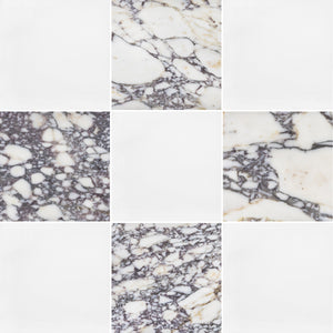 White Thassos & Bianco Violetta 12" Checkerboard Honed