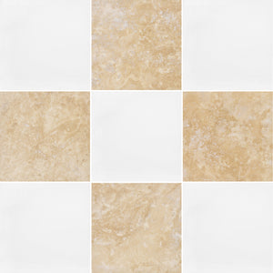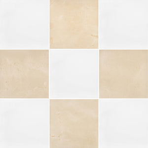 White Thassos & Crema Marfil 12" Checkerboard Honed