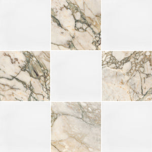 White Thassos & Calacatta Green 12" Checkerboard Honed