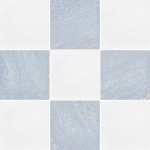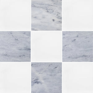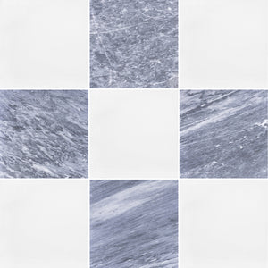 White Thassos & Blue Mist 12" Checkerboard Honed