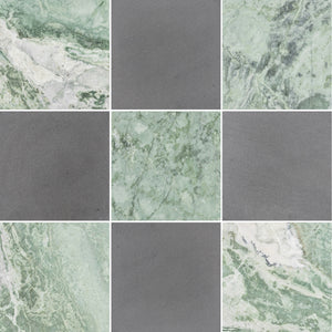 Emerald Green & Grey Basalt 12" Checkerboard Honed