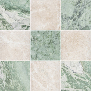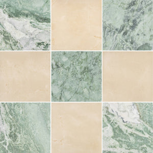 Emerald Green & Crema Marfil 12" Checkerboard Honed