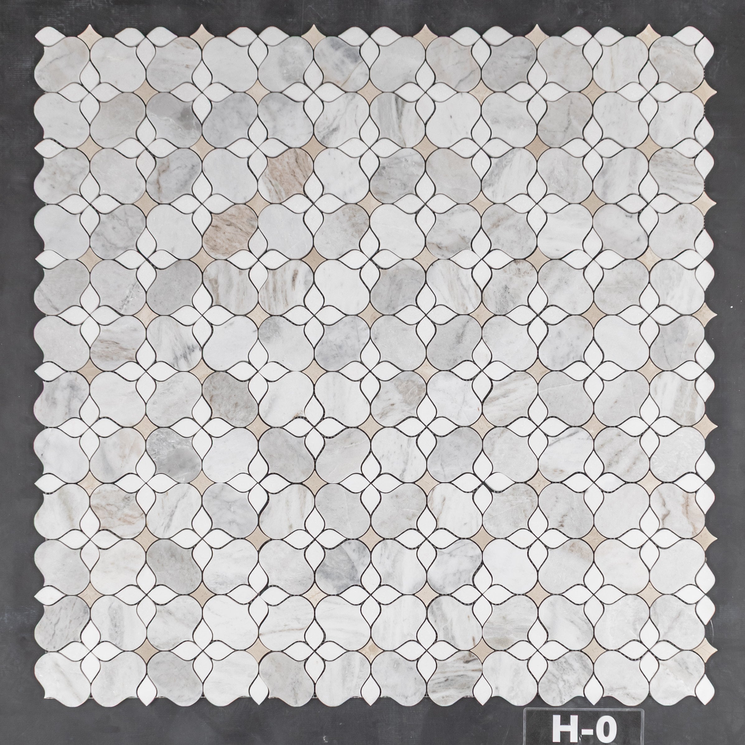 Bianco Oro Silhouette with White Thassos and Crema Marfil Mosaic Honed