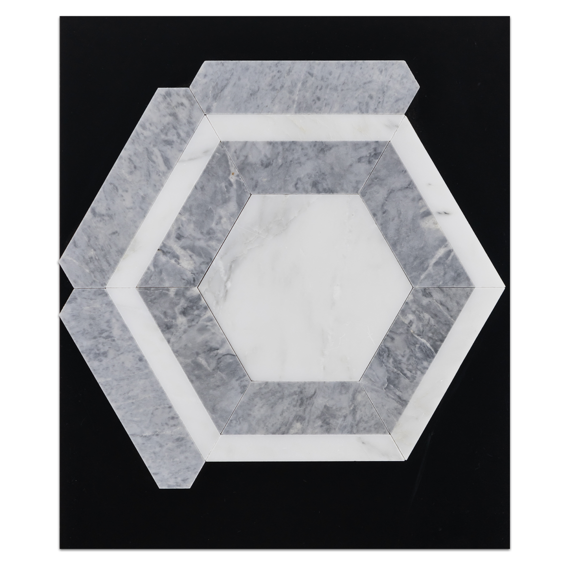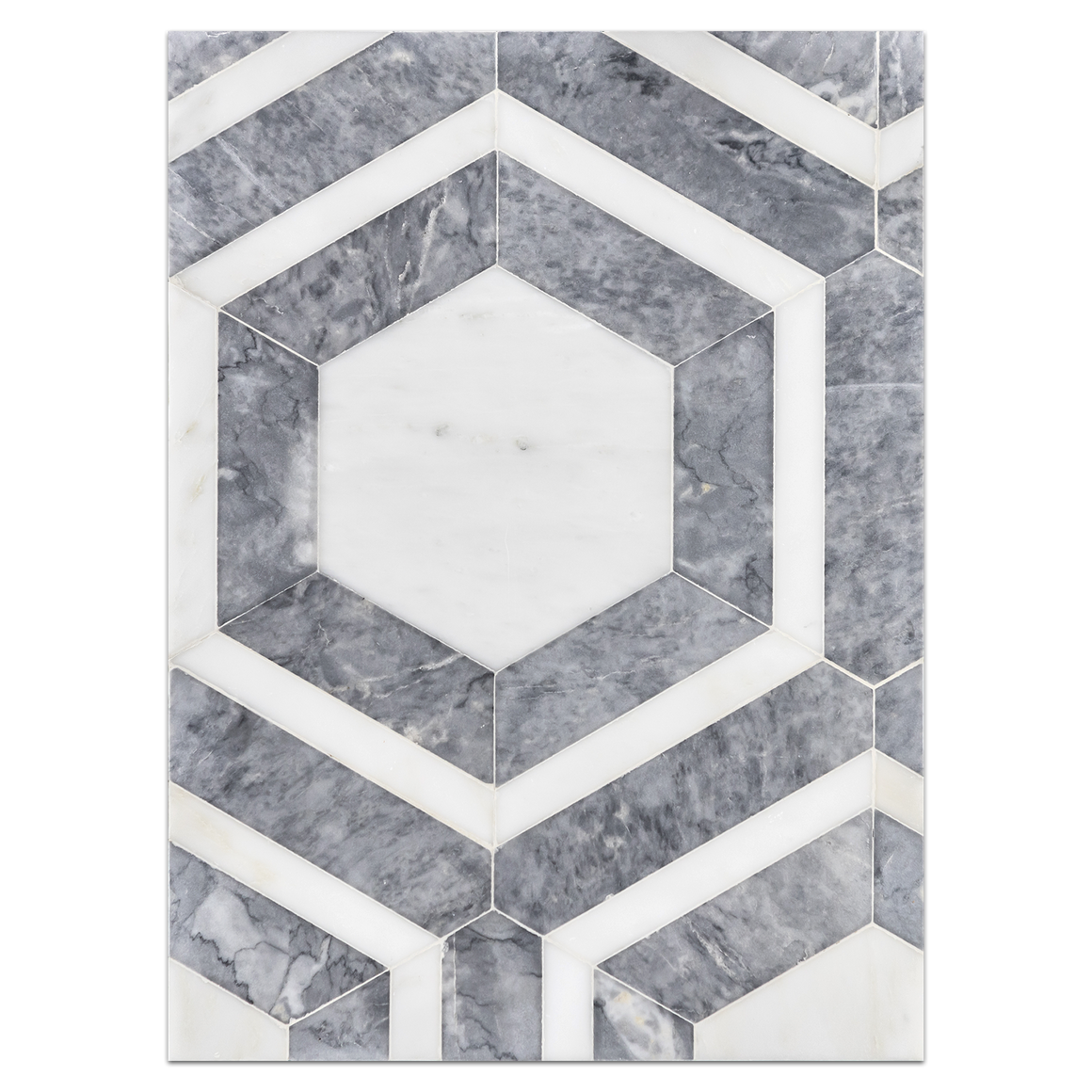 Pearl White Honeycomb with Pacific Gray Mosaic Honed