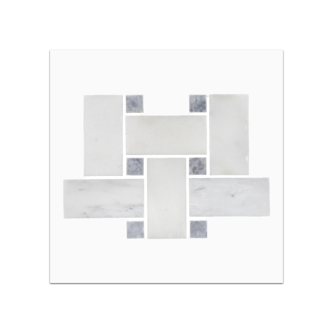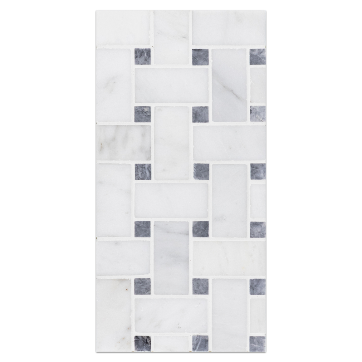 Pearl White Basketweave with 5/8" Pacific Gray Dot Mosaic Honed