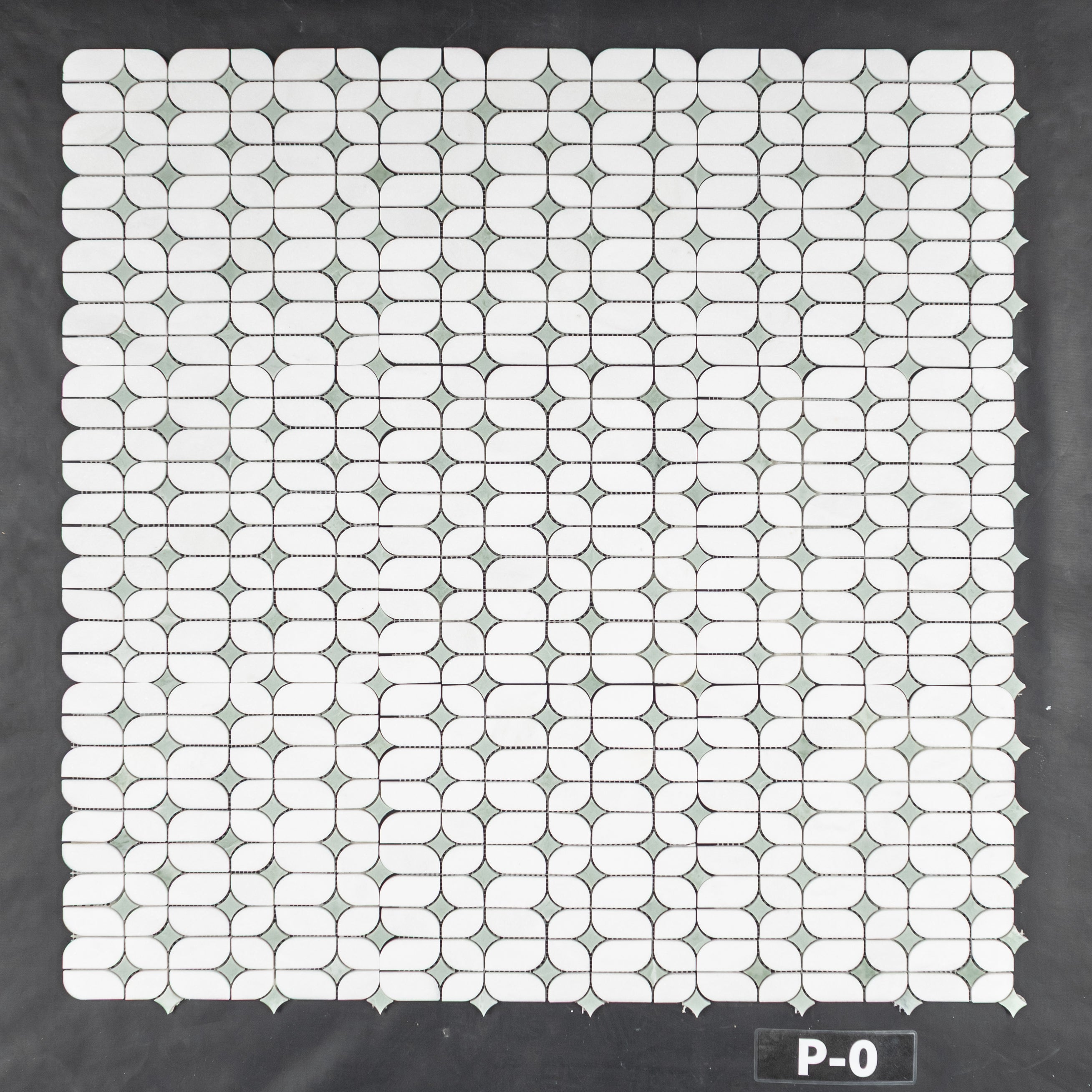 White Thassos Starlight with Emerald Green Star Mosaic Polished