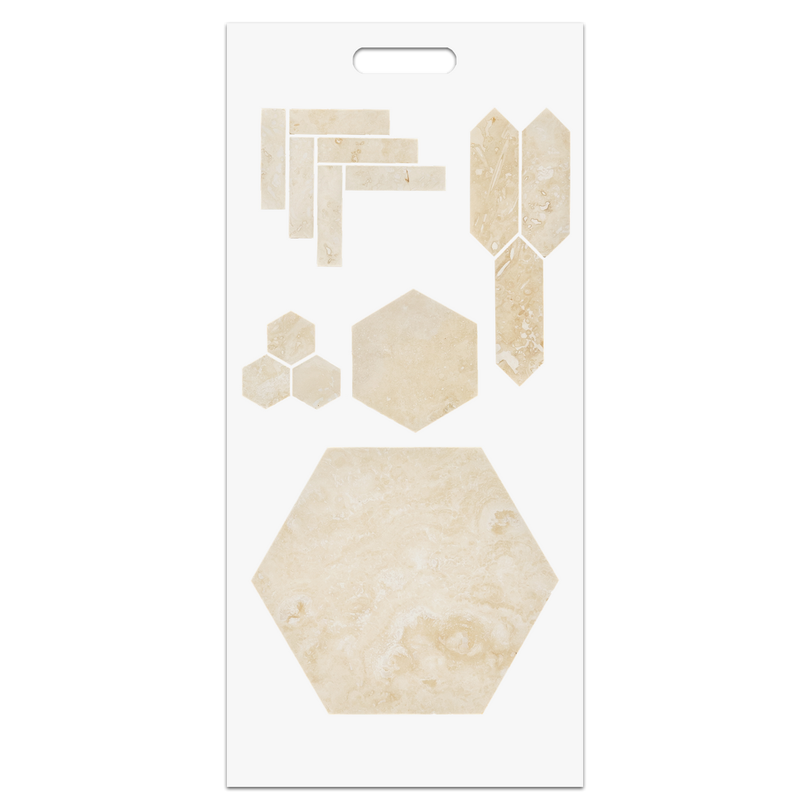 Cross-Cut Light Ivory Travertine 10 1/2" Hexagon Honed & Filled