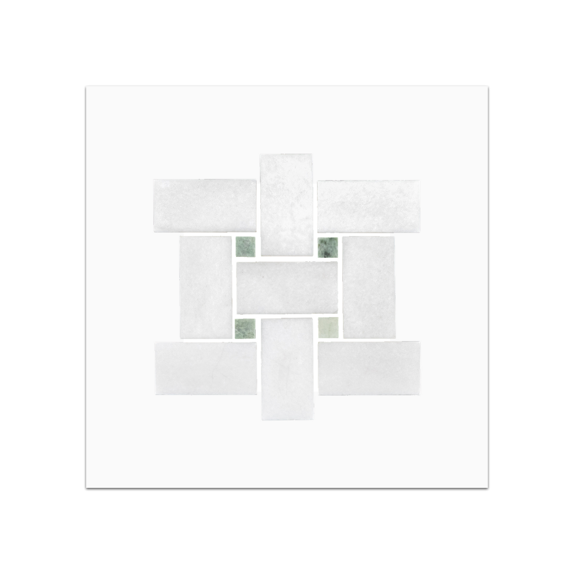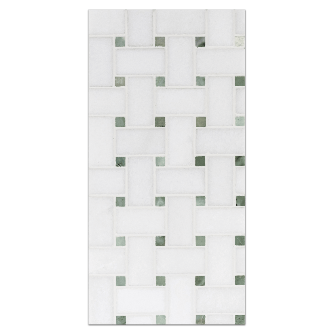 White Thassos Basketweave with 3/8" Ming Green Dot Mosaic Polished