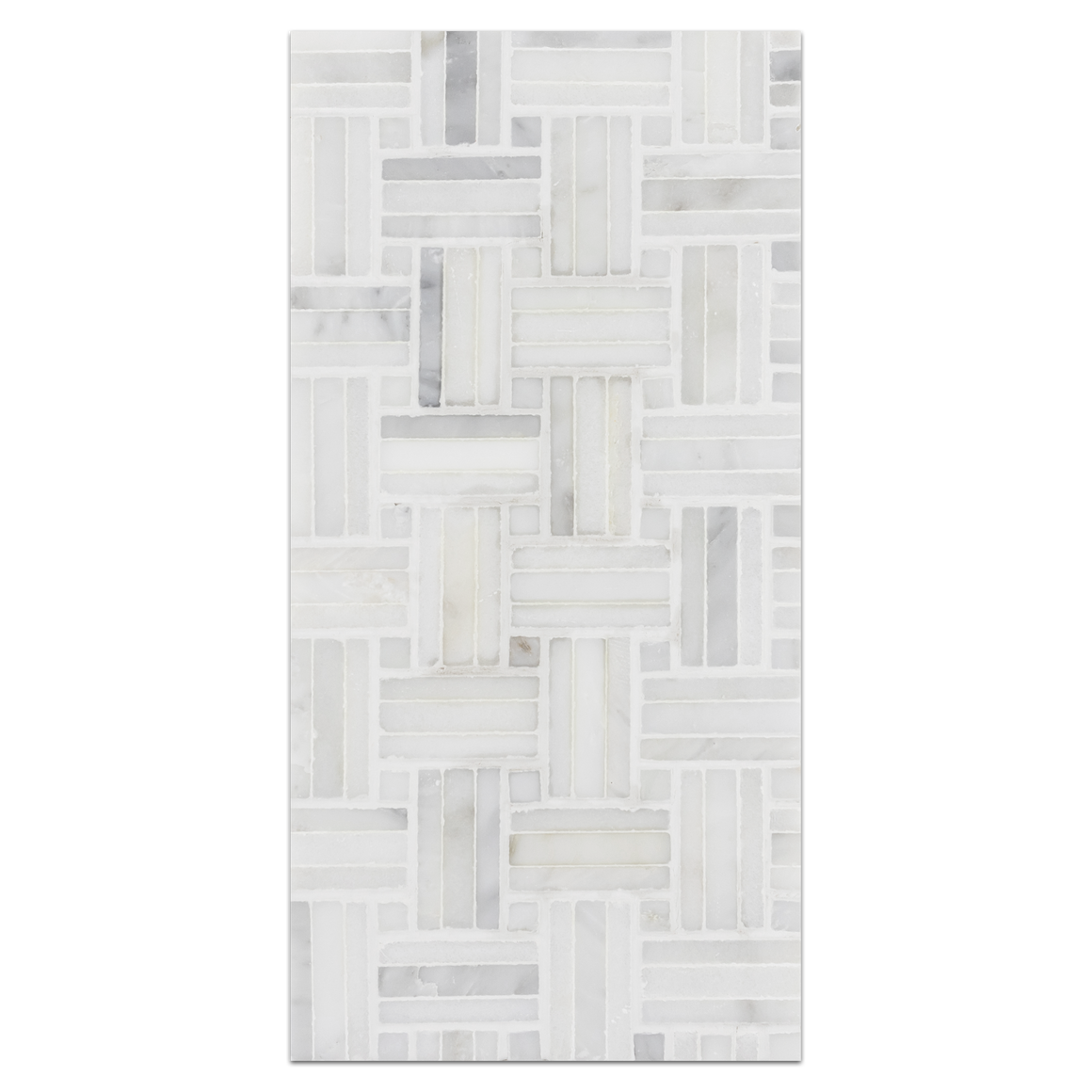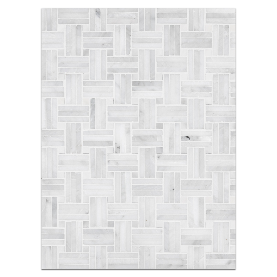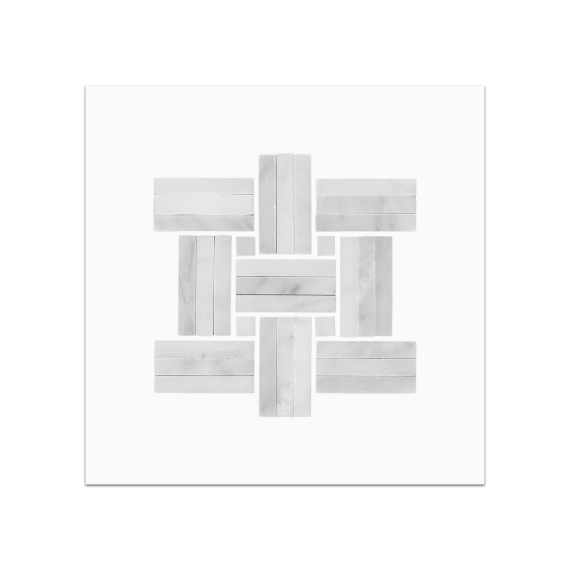 Pearl White Tri-Weave with 3/8" Pearl White Dot Mosaic Honed