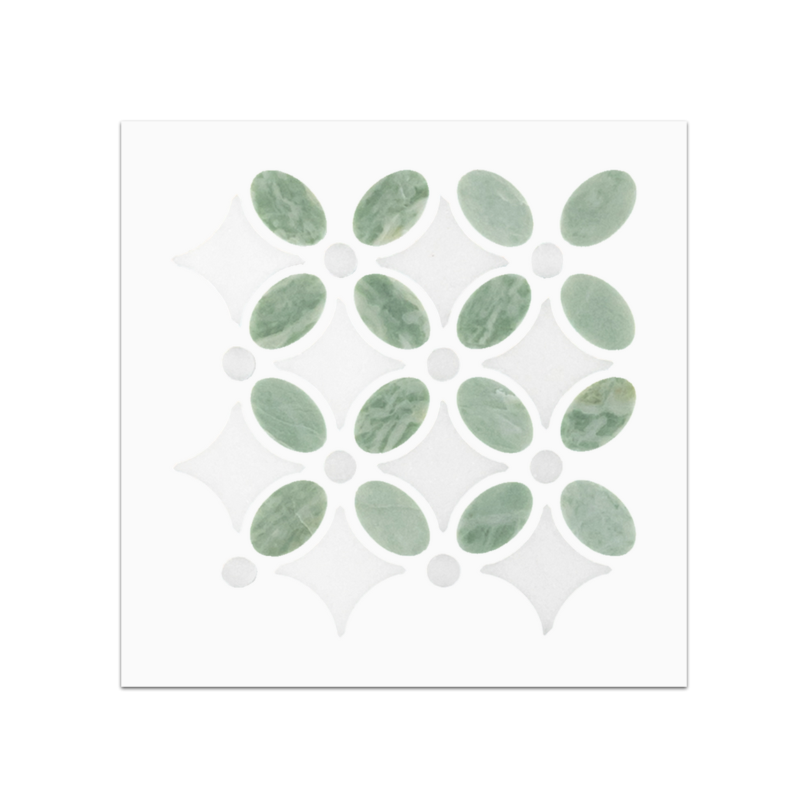 Emerald Green Fleur with White Thassos Mosaic Polished