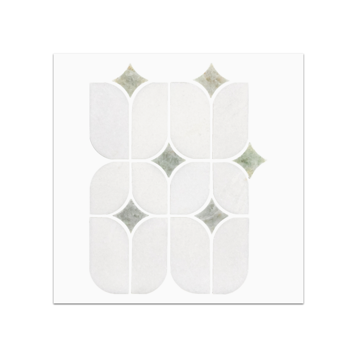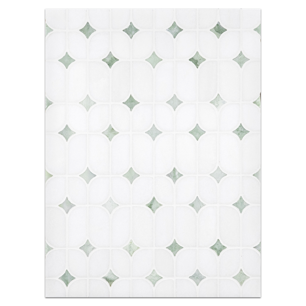 White Thassos Starlight with Emerald Green Star Mosaic Polished