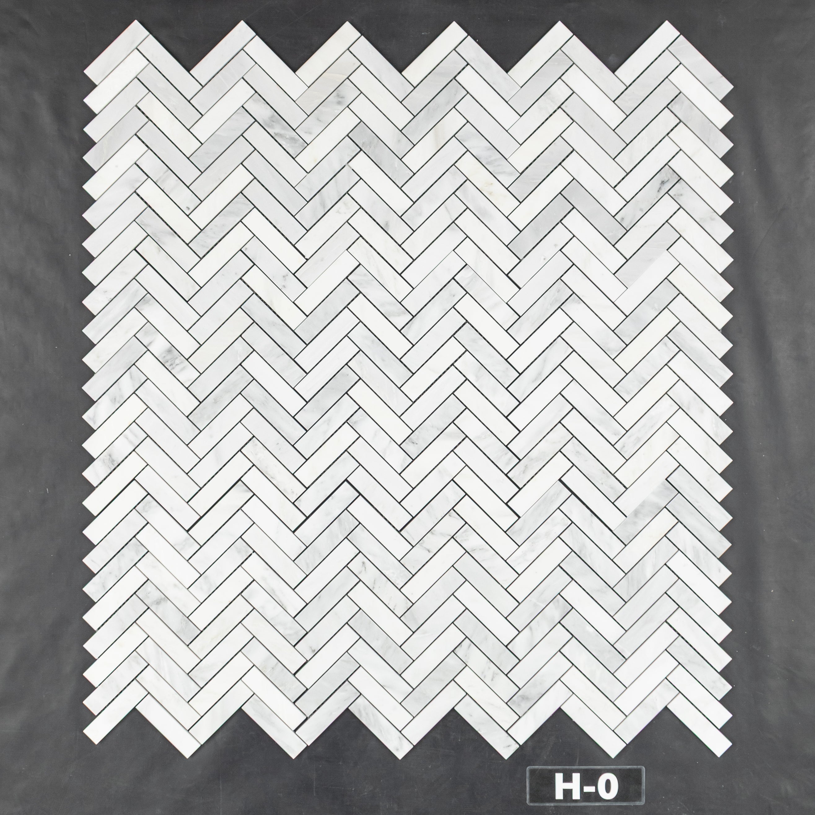 Pearl White 1" x 4" Herringbone Mosaic Honed