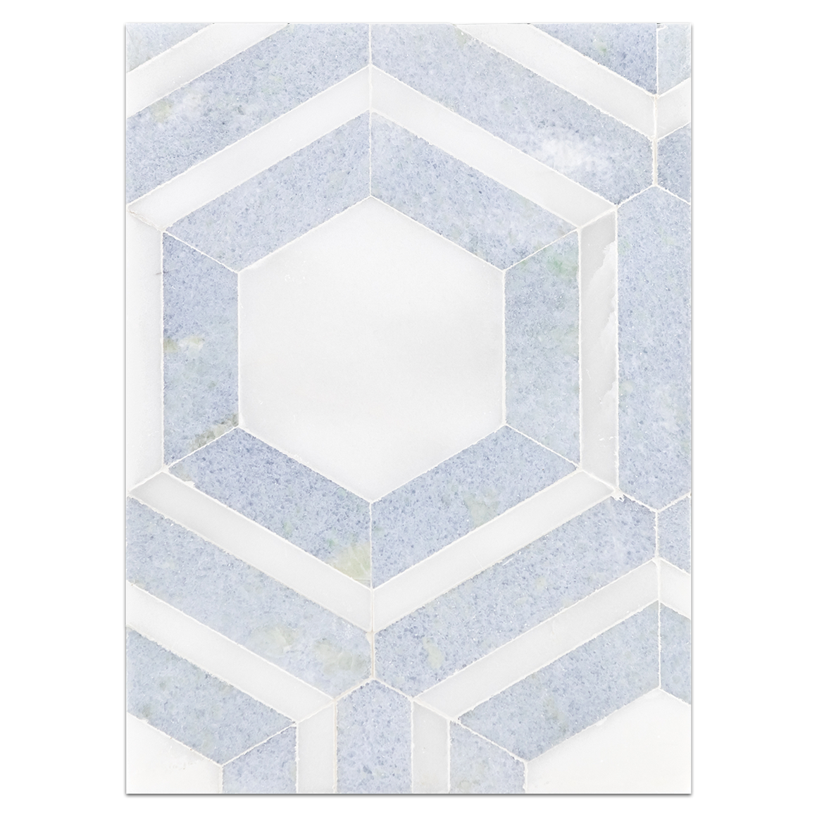 White Absolute Honeycomb with Blue Celeste Mosaic Honed