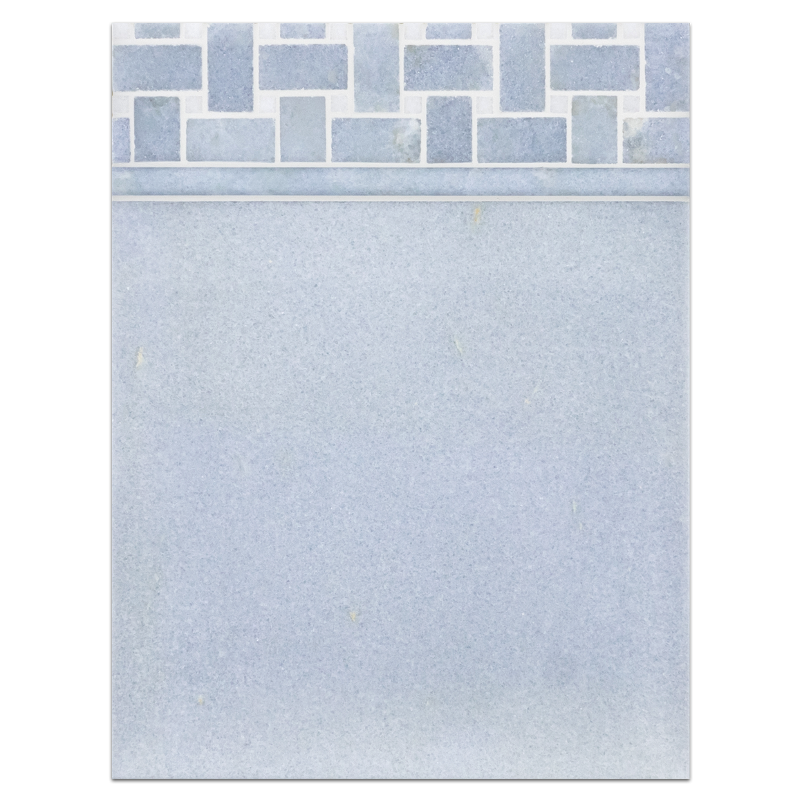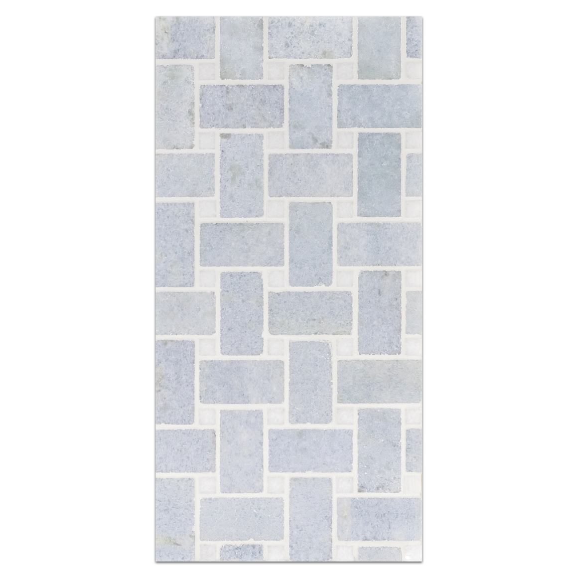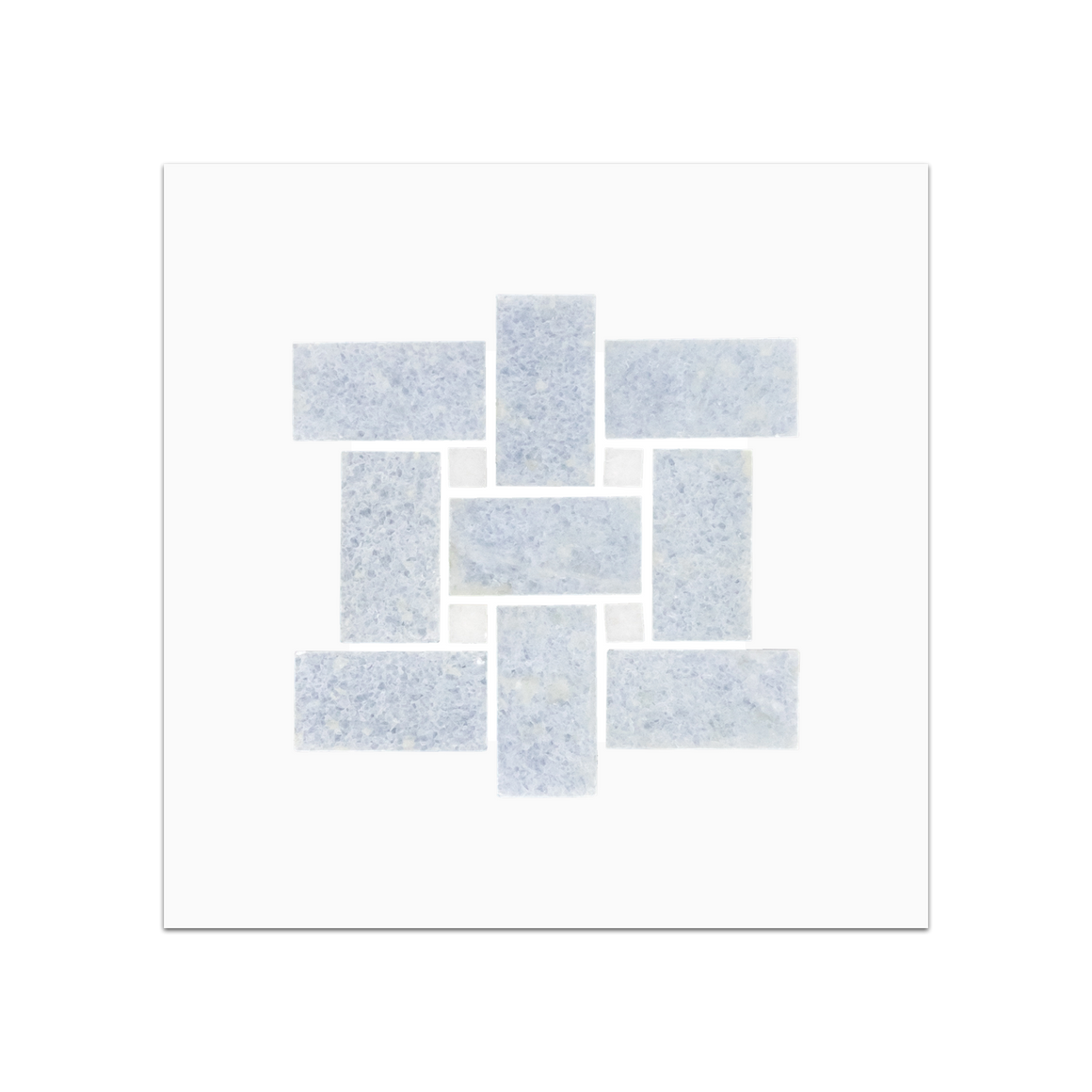 Blue Celeste Basketweave with 3/8" White Thassos Dot Mosaic Polished