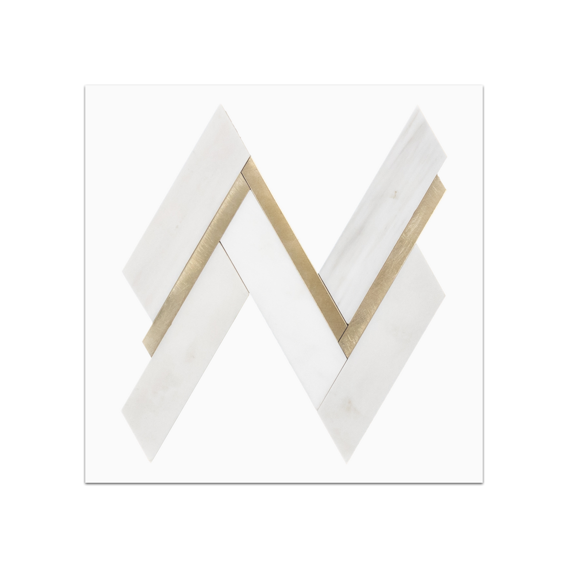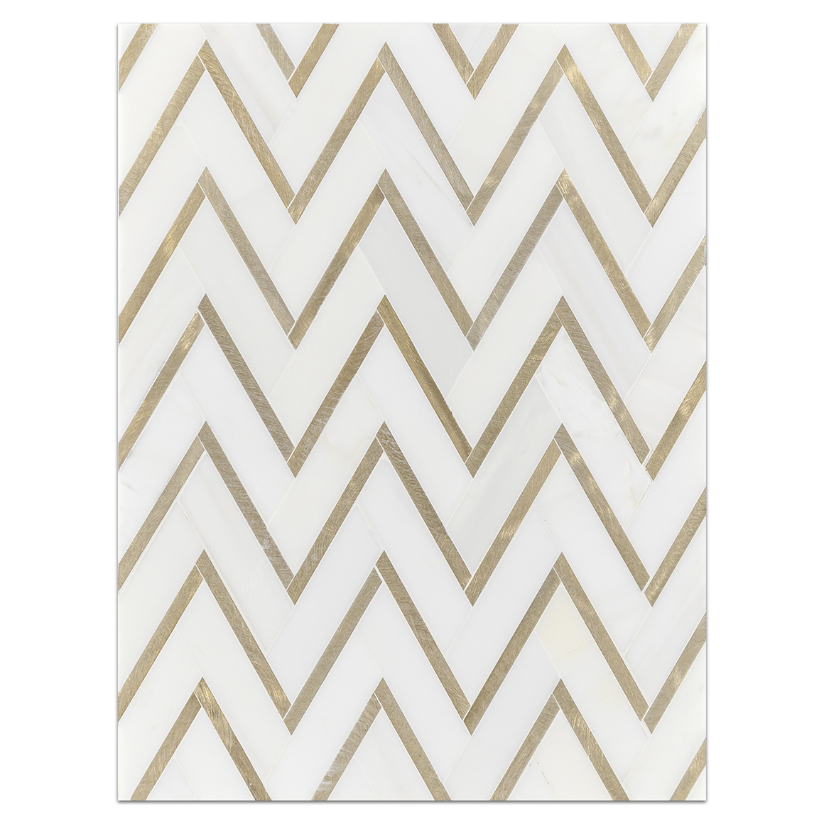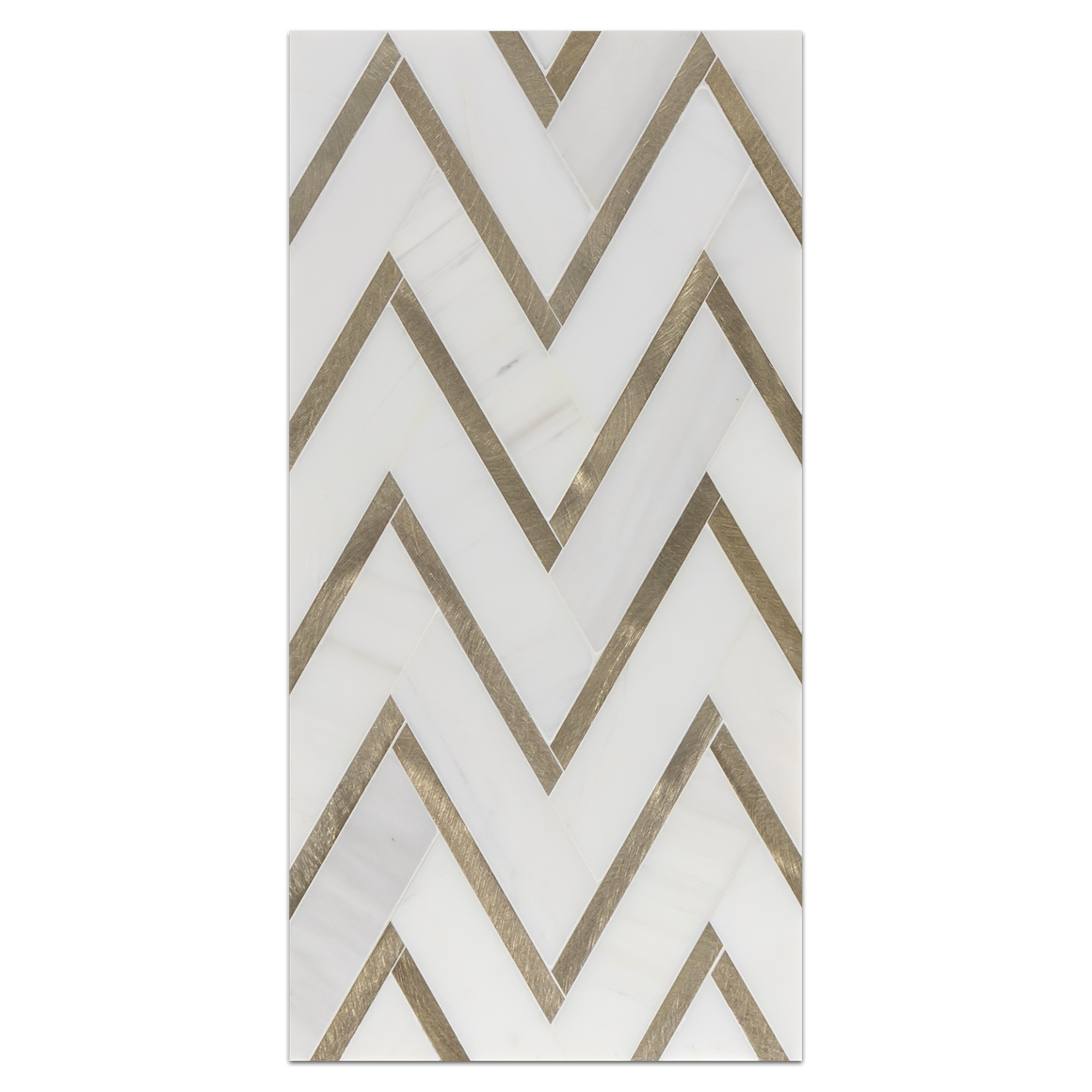 Dolomite Herringbone with Gold Aluminum Mosaic Honed