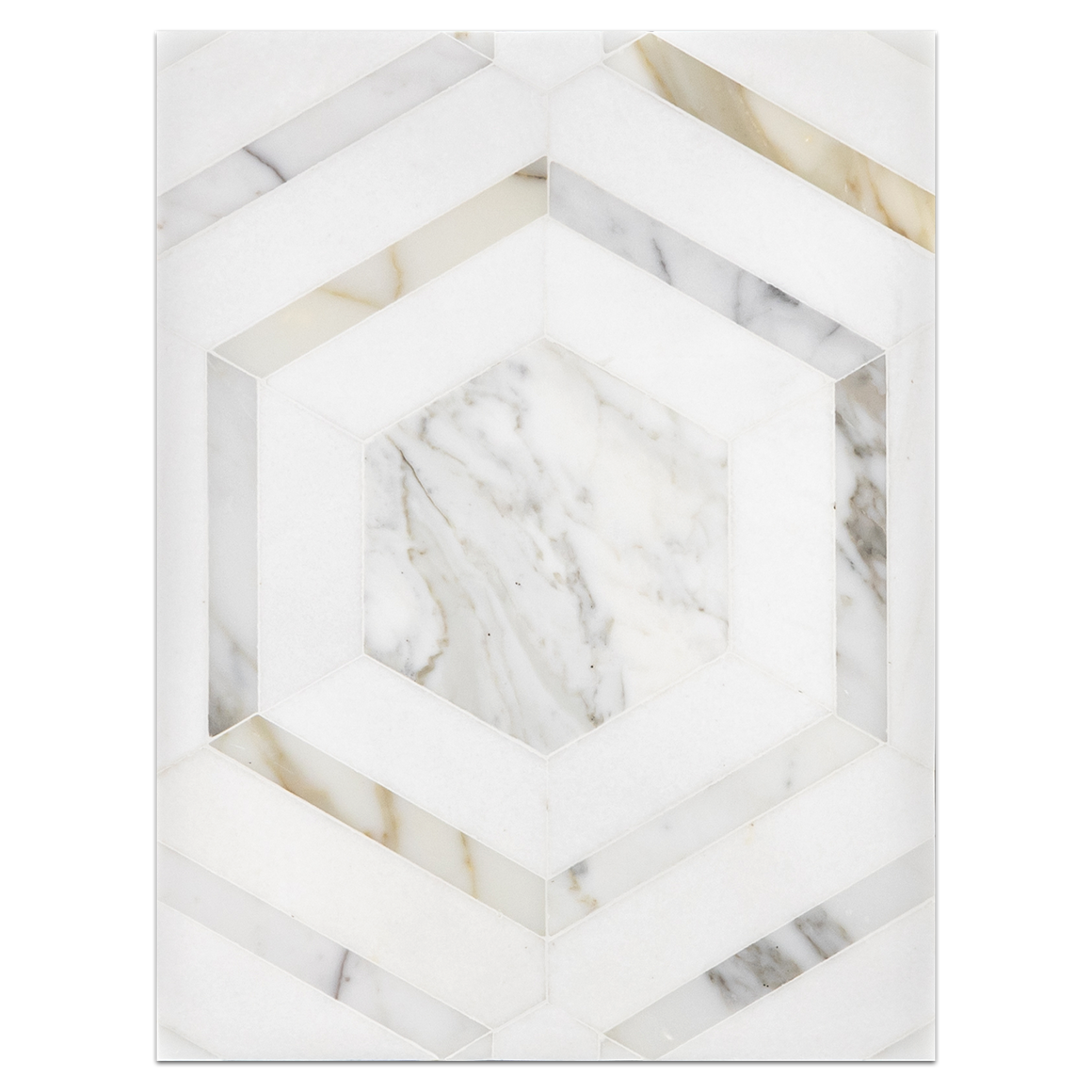 Calacatta Gold Honeycomb with White Thassos Mosaic Honed