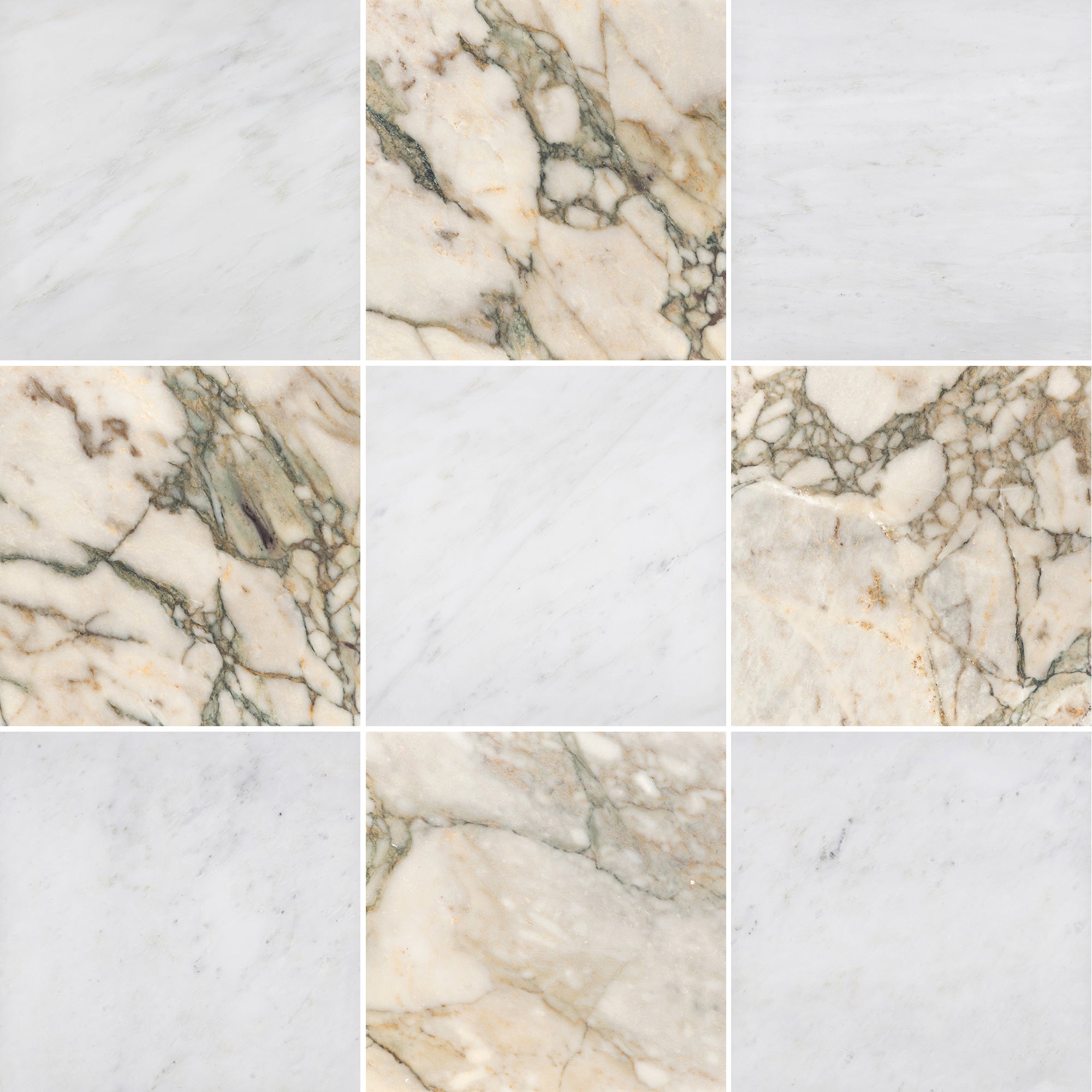 Pearl White & Calacatta Green 12" Checkerboard Honed