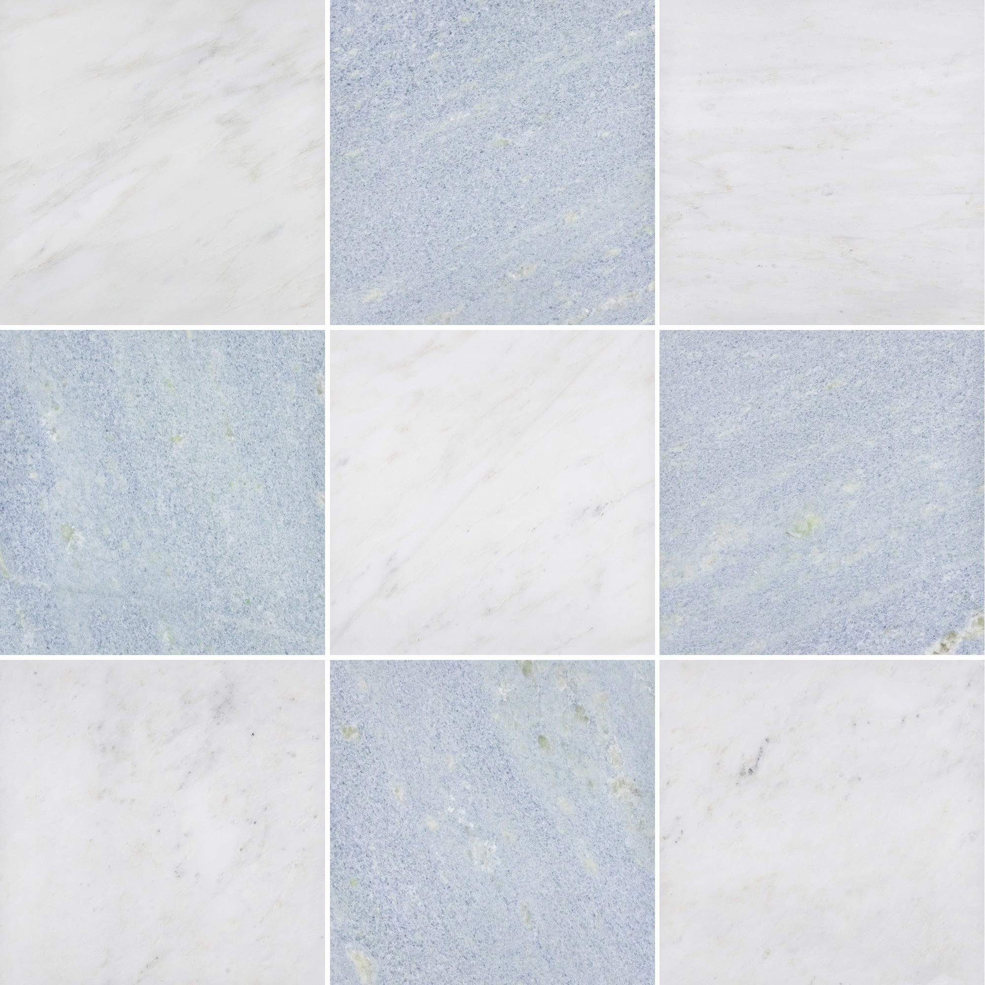 Pearl White & Blue Celeste 12" Checkerboard Honed