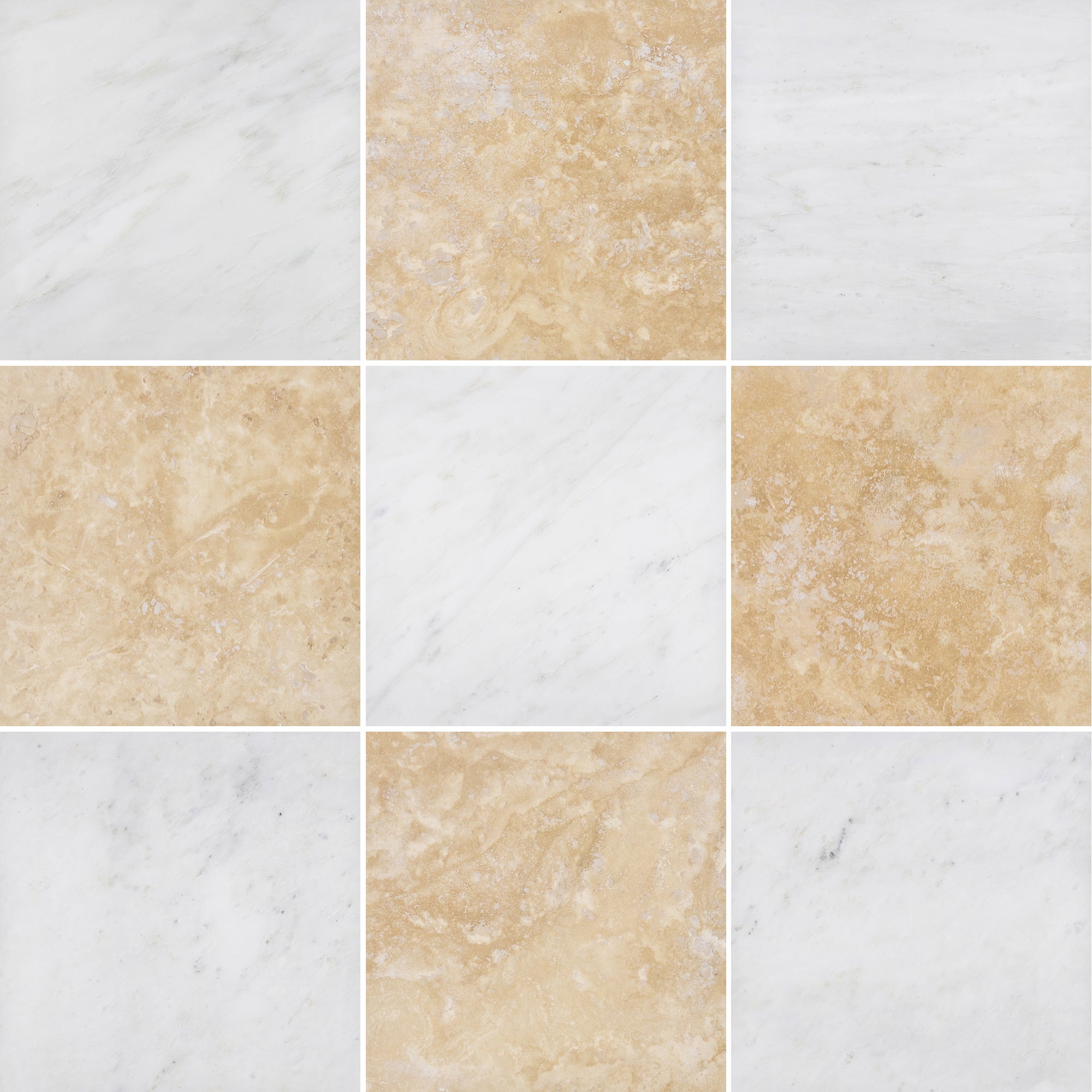 Pearl White & Light Ivory 12" Checkerboard Honed