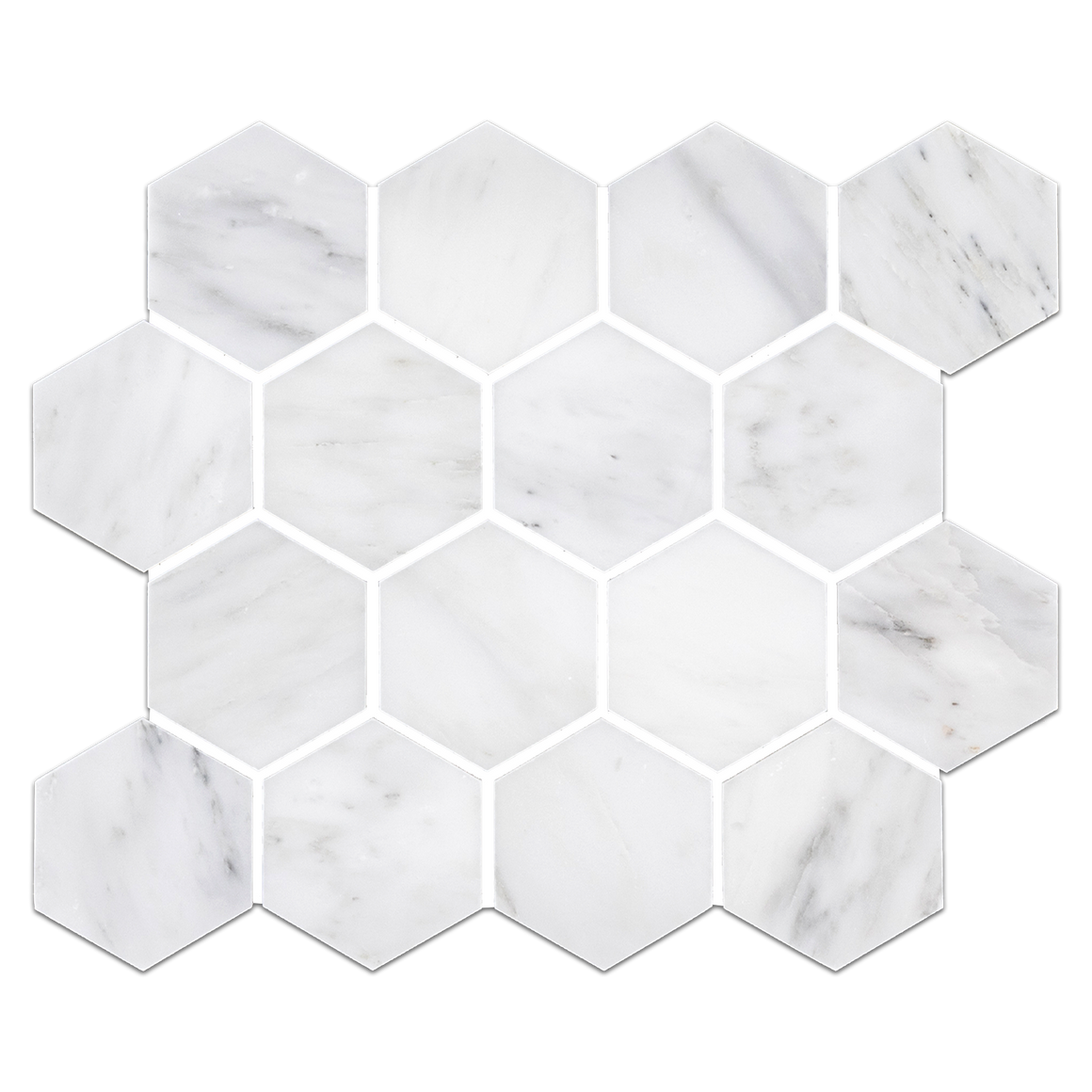 AM8624H - Pearl White 3" Hexagon Mosaic Honed