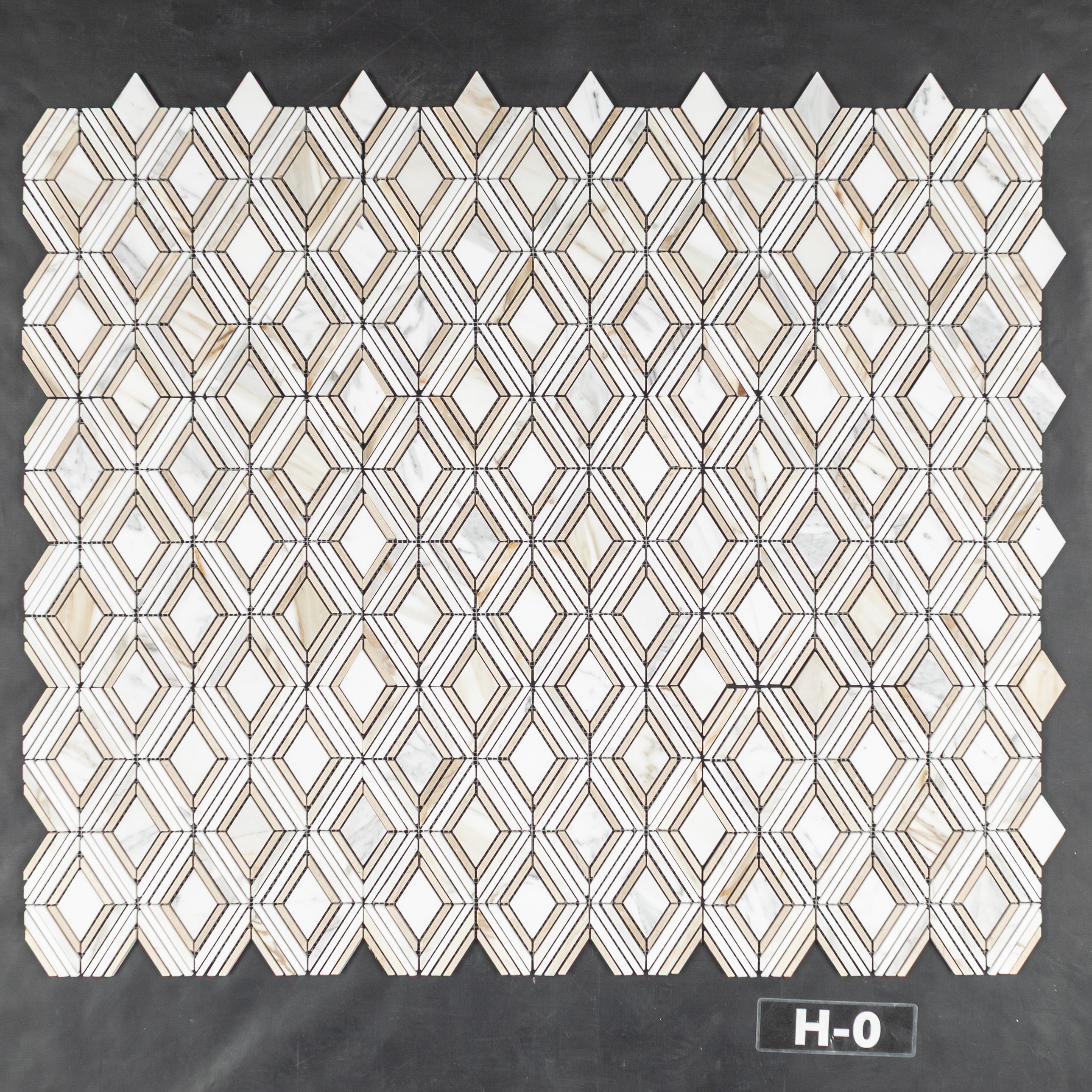 Calacatta Petite Jewel with White Thassos and Crema Marfil Mosaic Honed