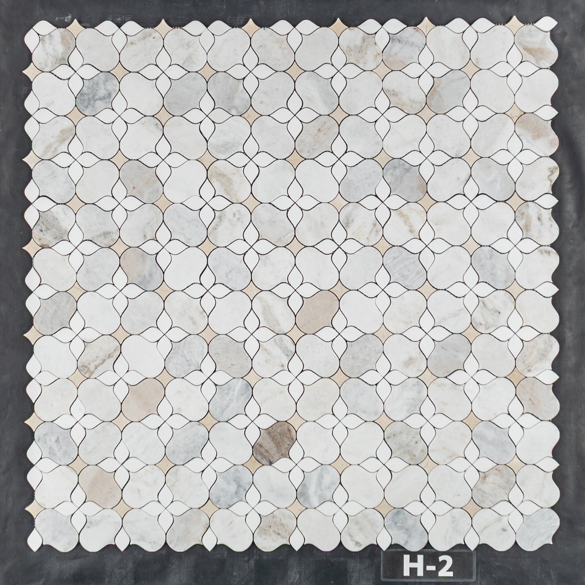 Bianco Oro Silhouette with White Thassos and Crema Marfil Mosaic Honed