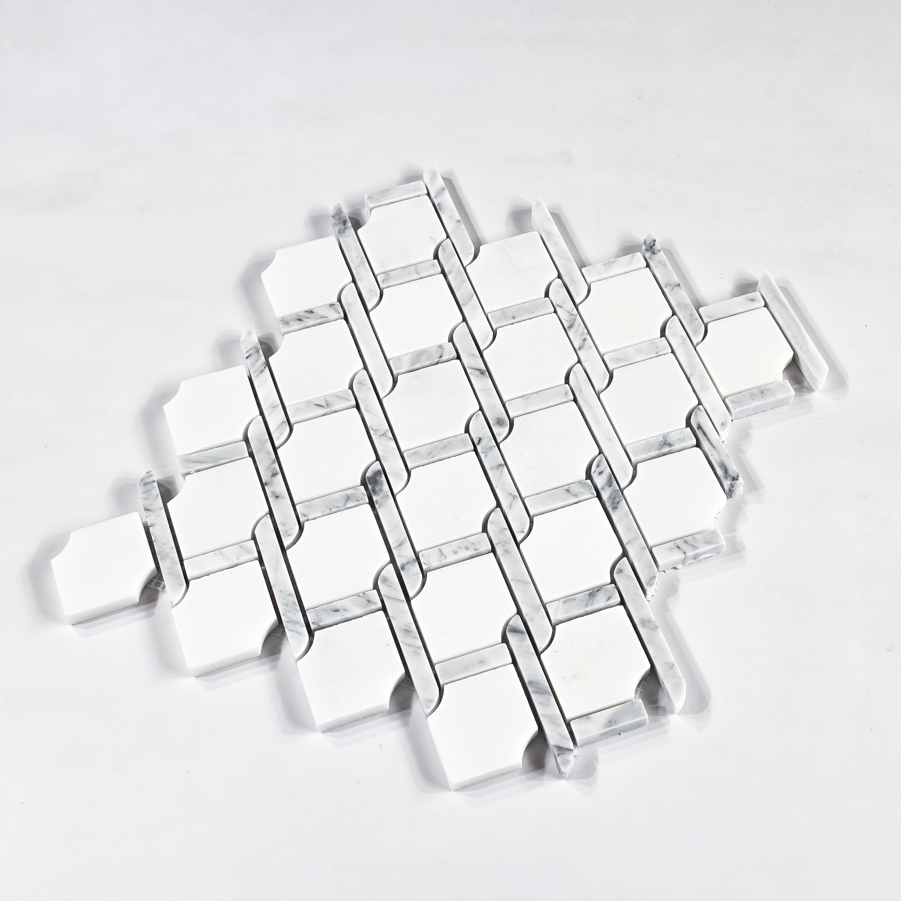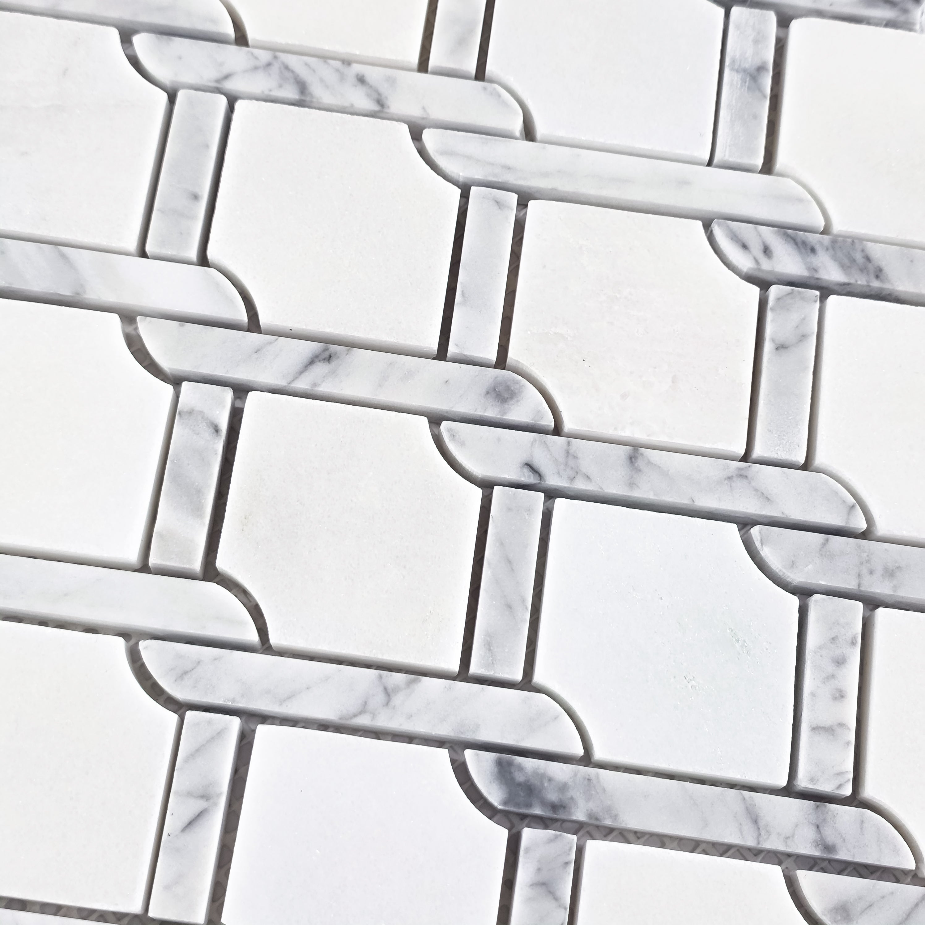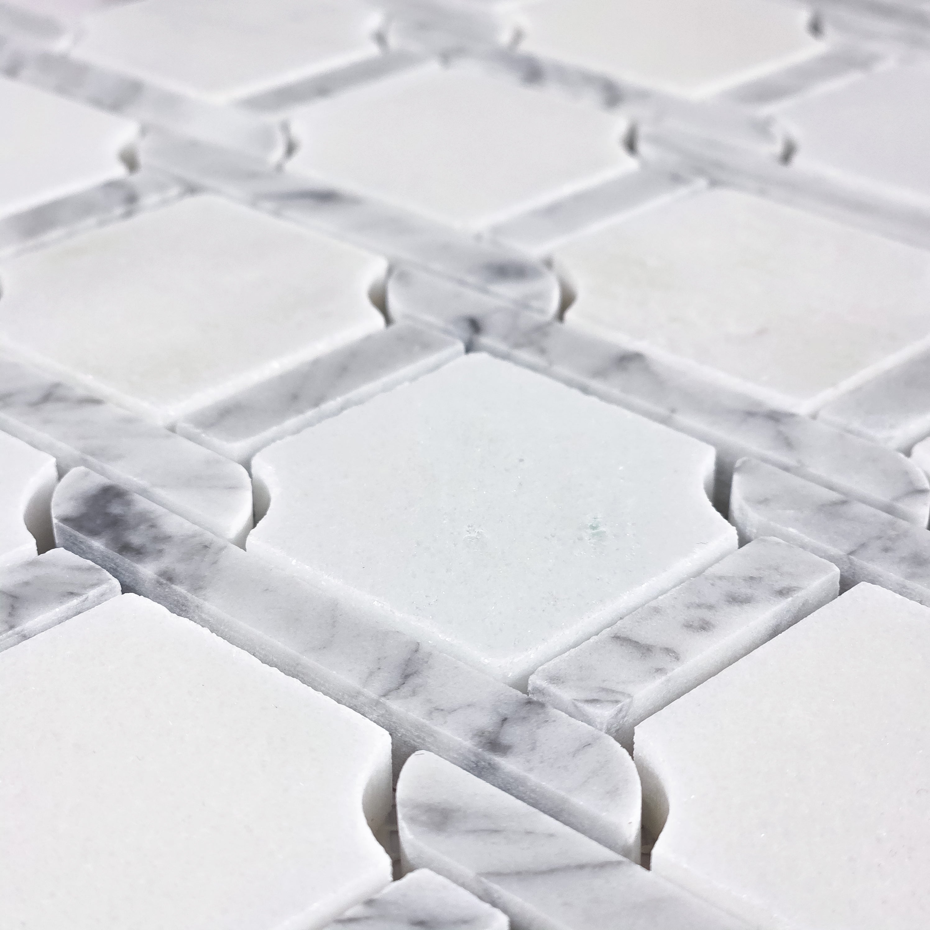 White Absolute Argyle with Bianco Carrara Bar Mosaic Polished