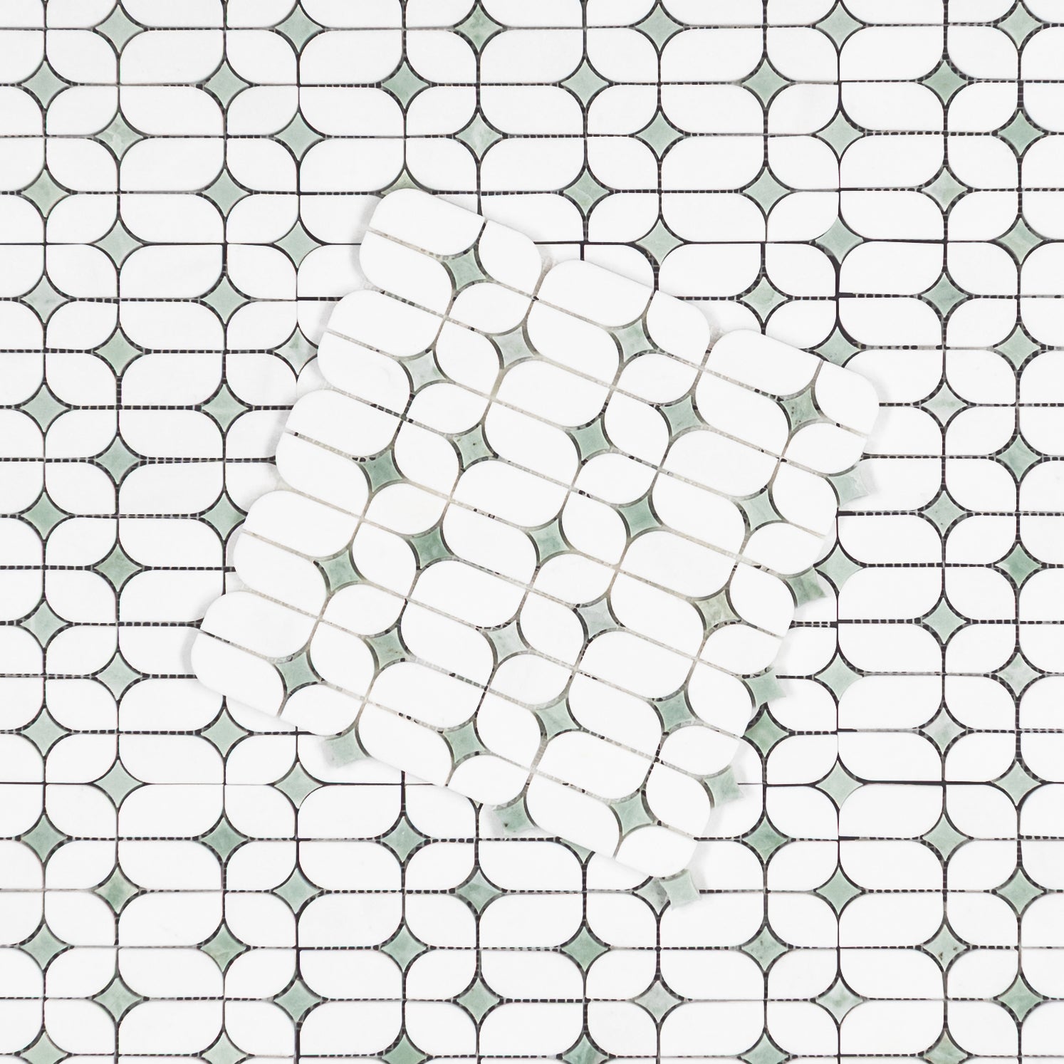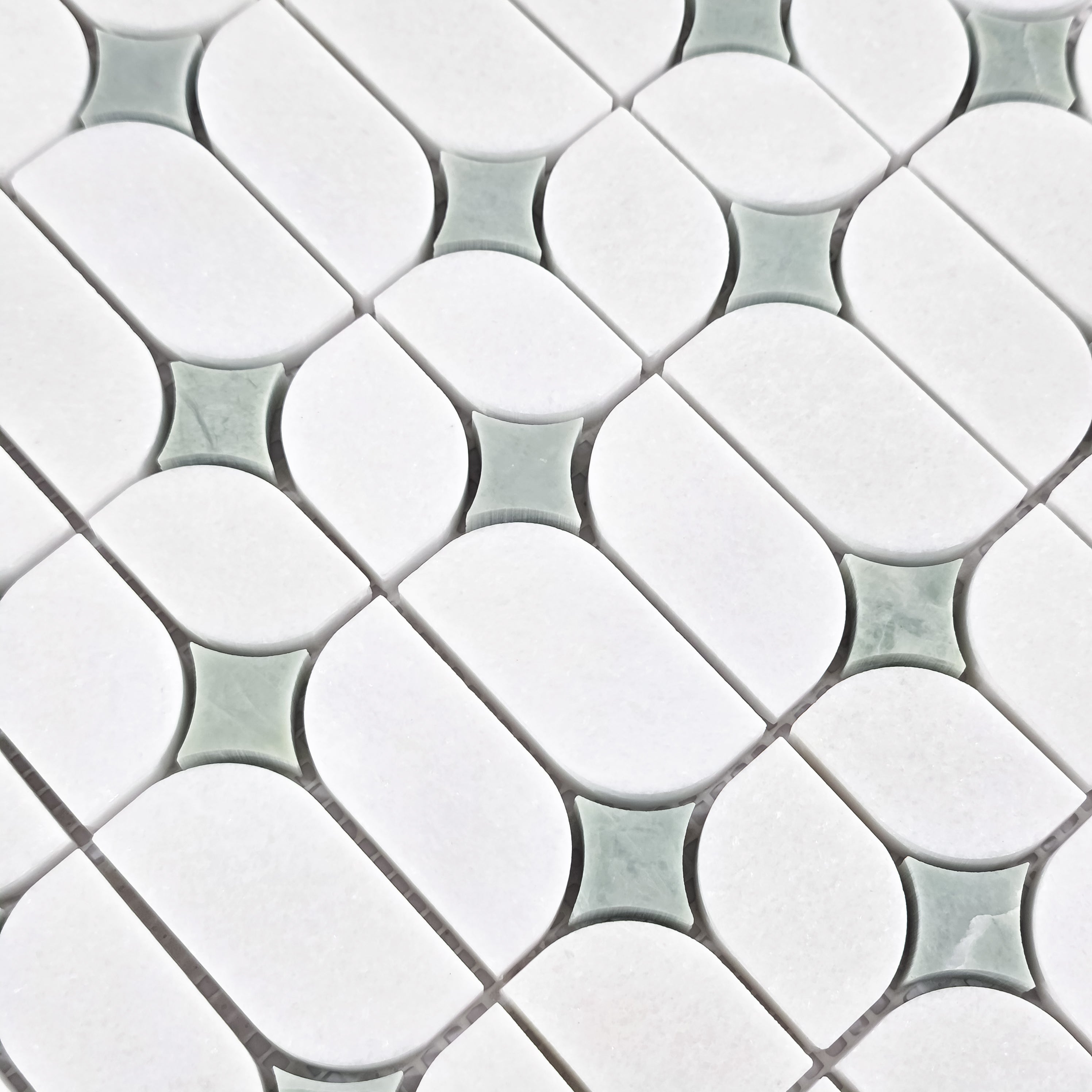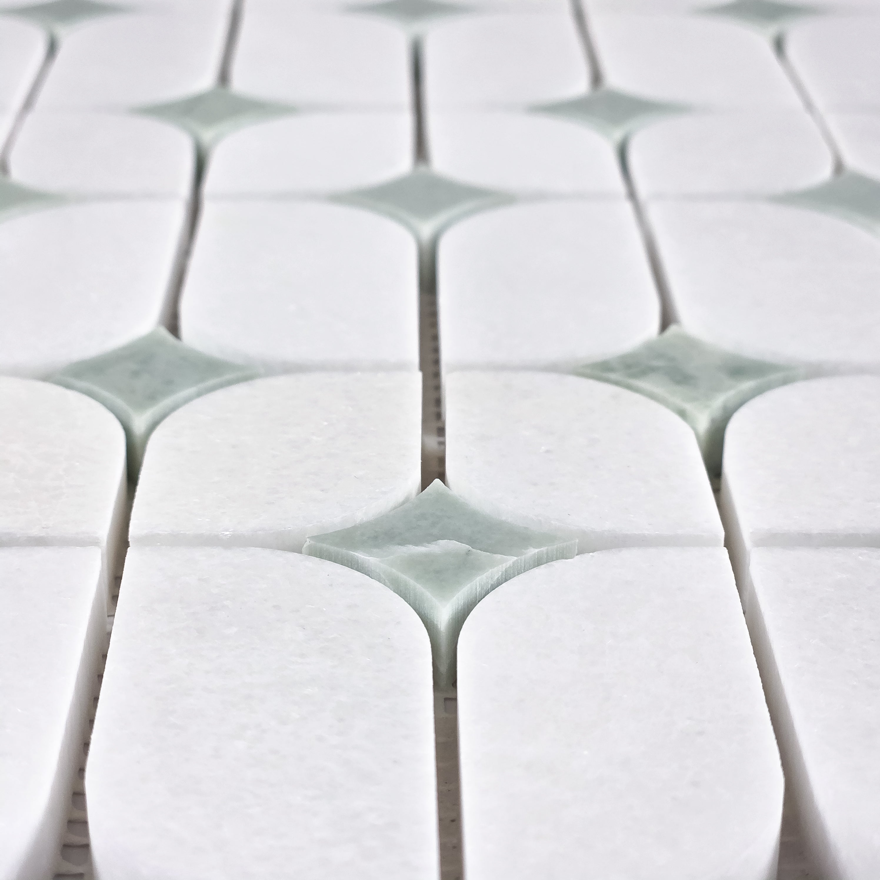White Thassos Starlight with Emerald Green Star Mosaic Polished