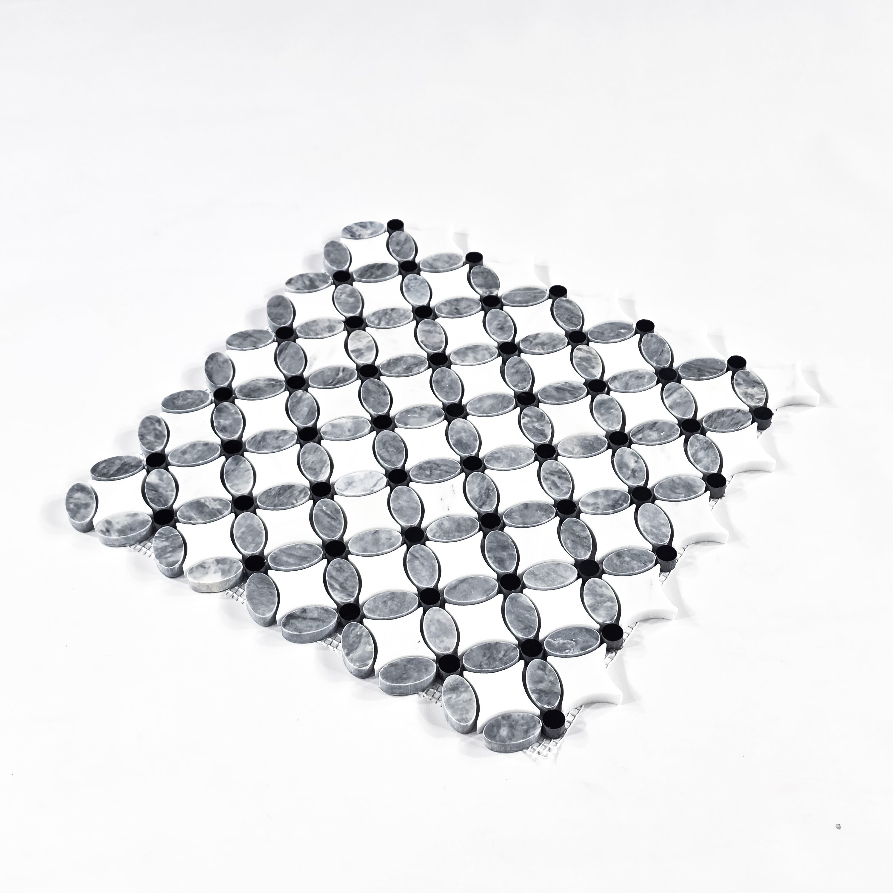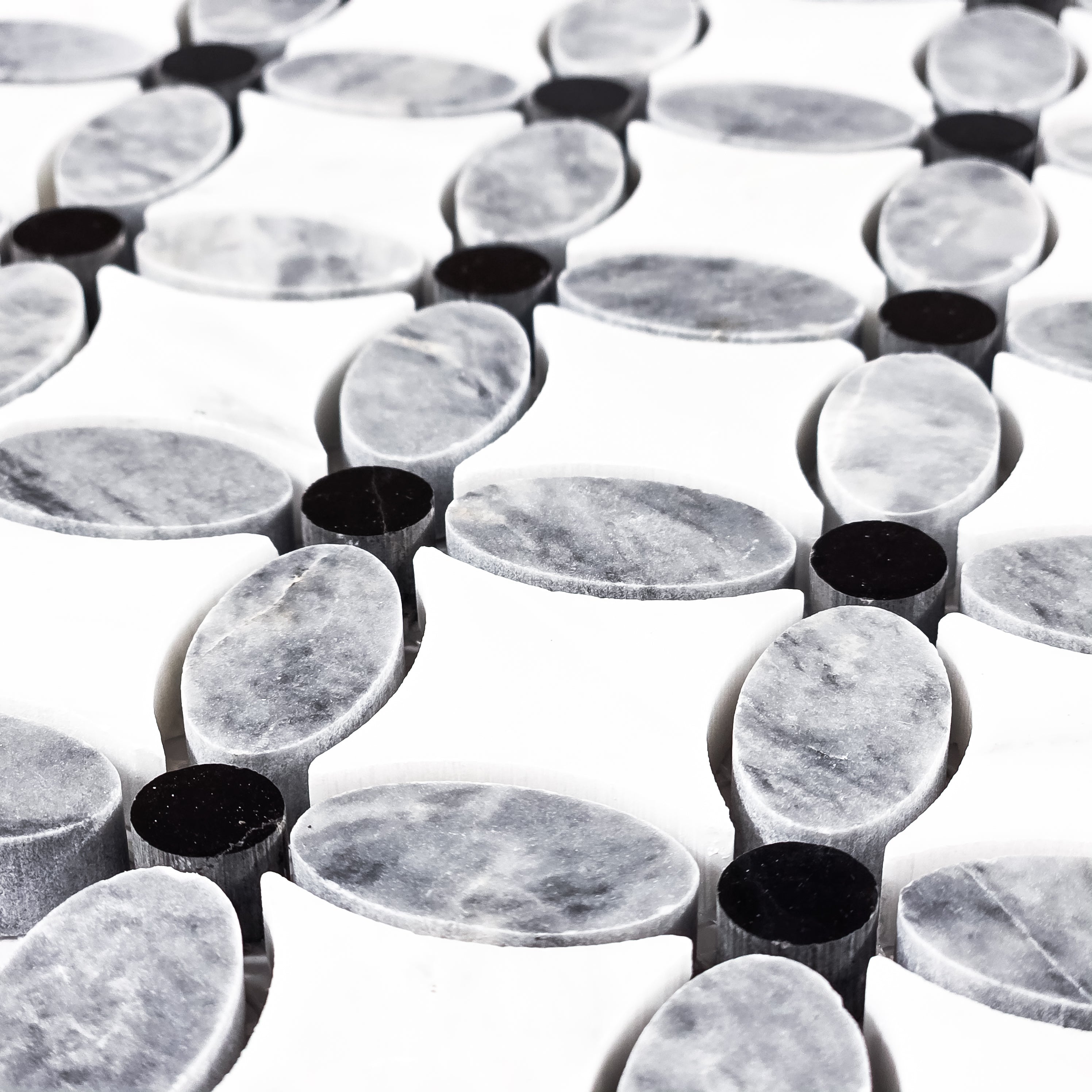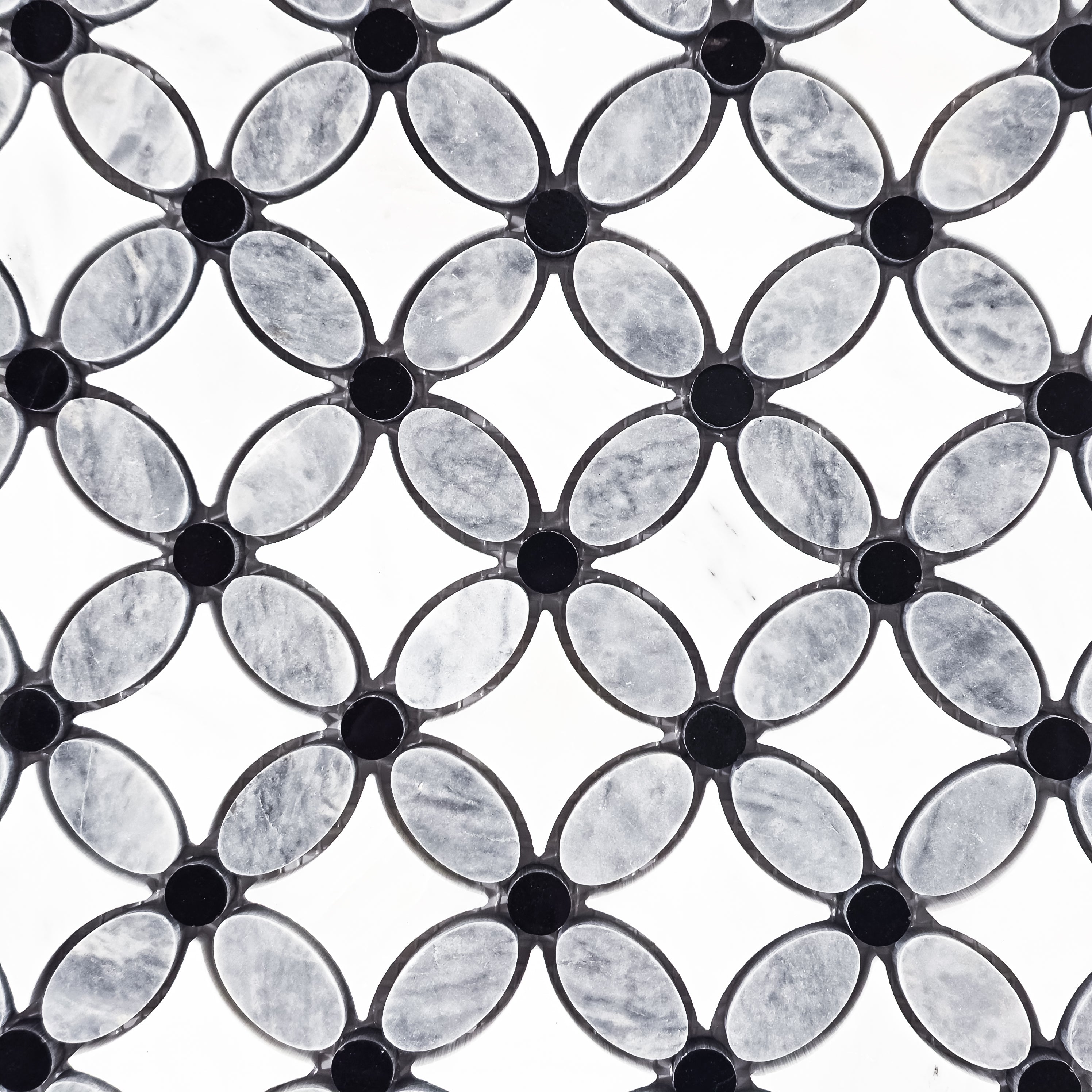 Pacific Gray Fleur with Pearl White and Black Dot Mosaic Polished