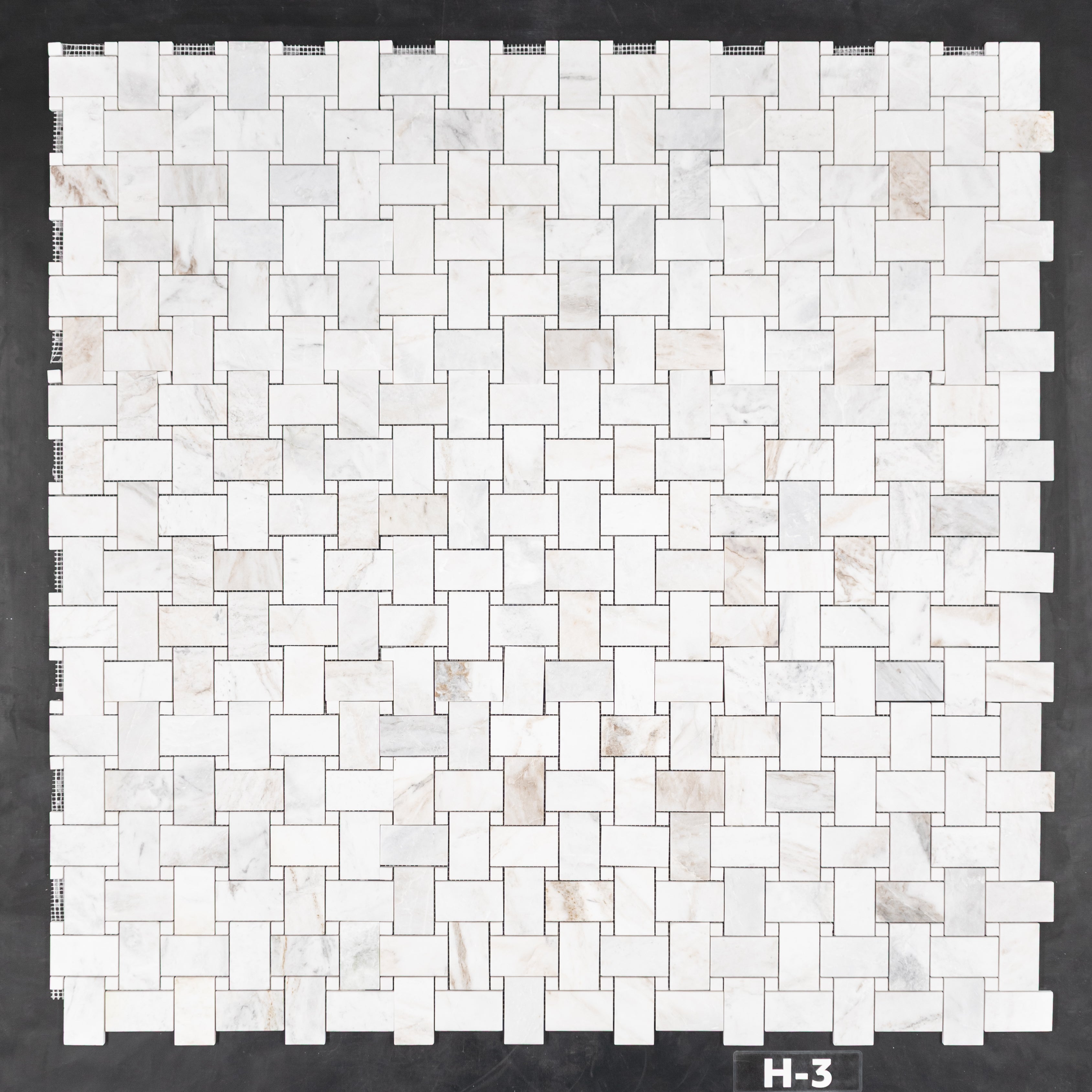 Bianco Oro Extra Large Basketweave with 5/8" White Thassos Dot Mosaic Honed