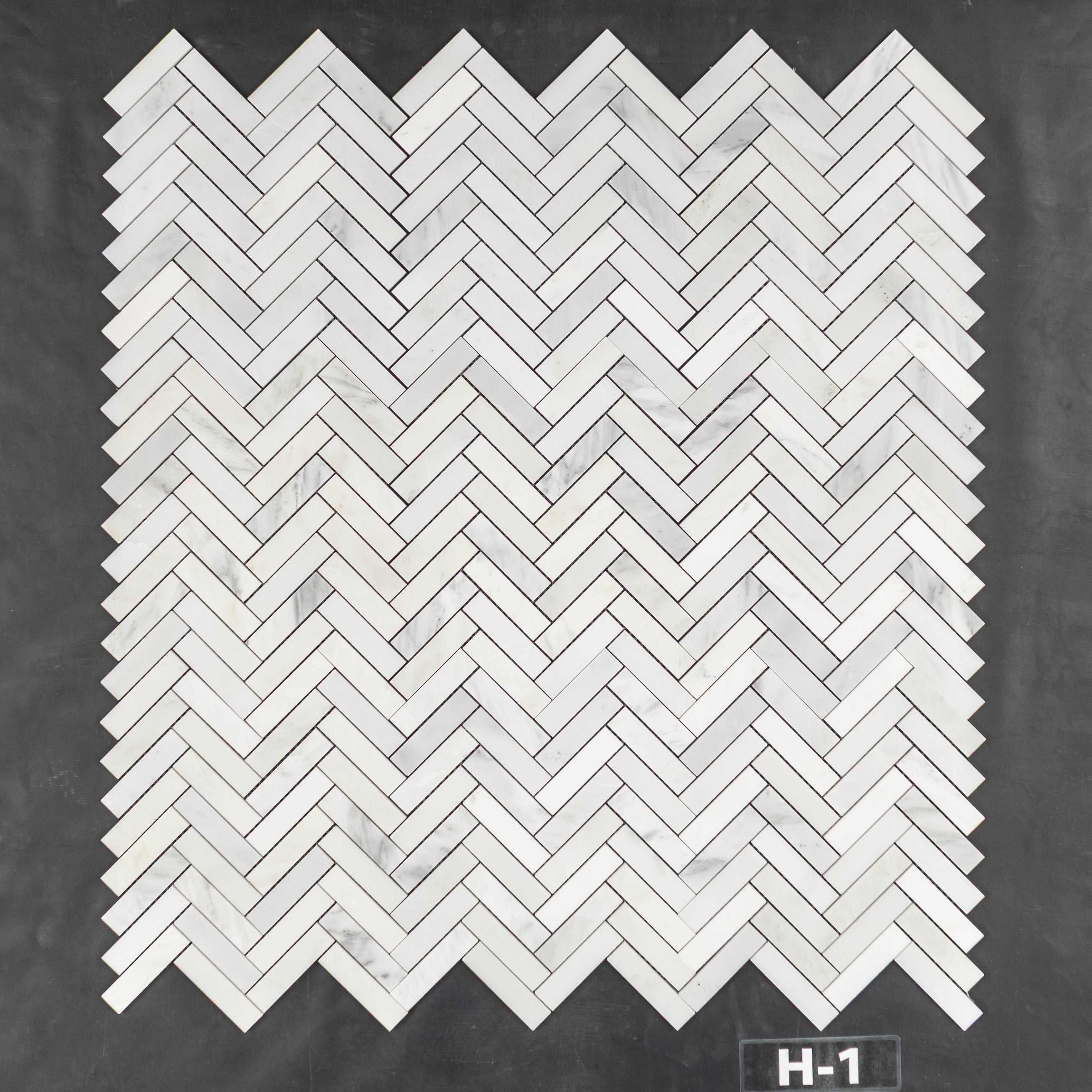 Pearl White 1" x 4" Herringbone Mosaic Honed