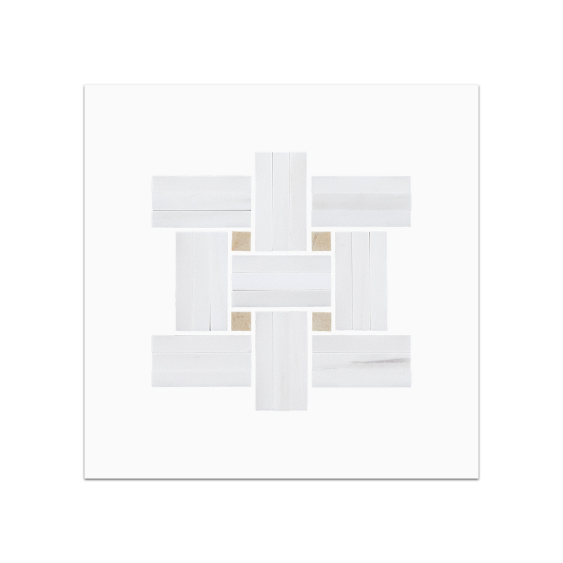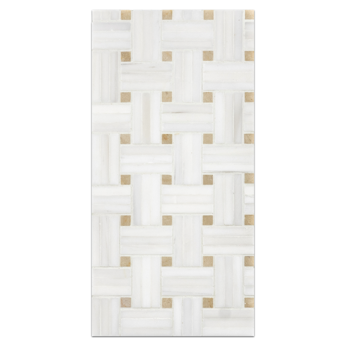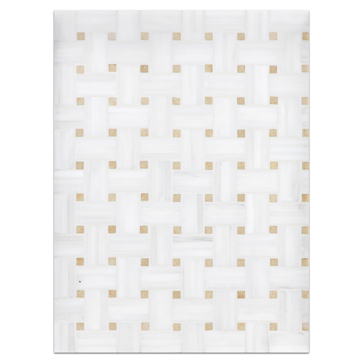 Dolomite Tri-Weave with 3/8" Crema Marfil Dot Mosaic Honed