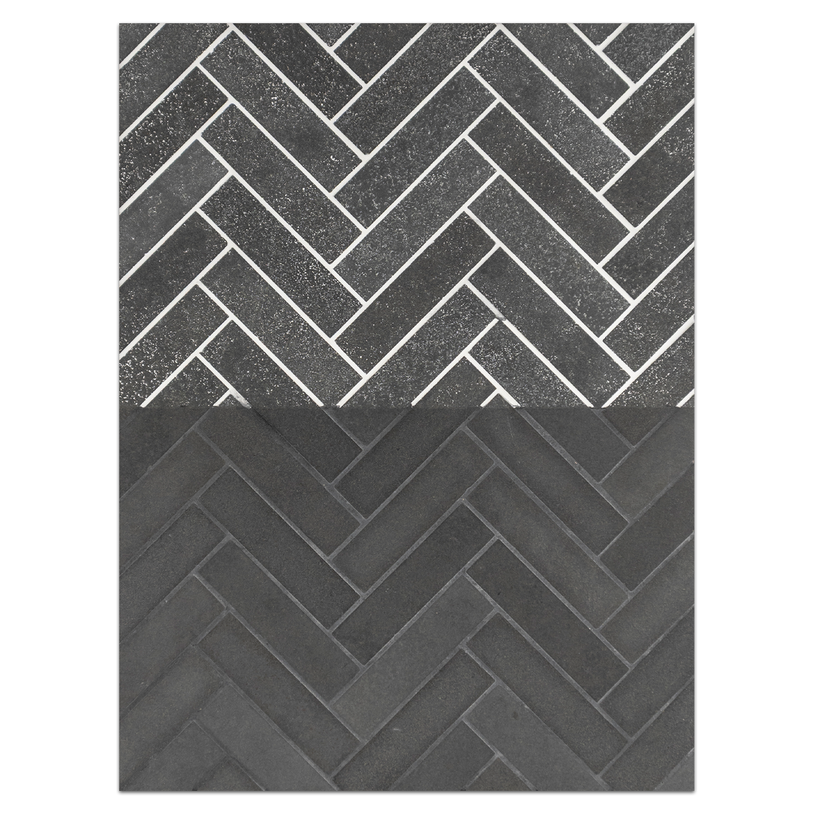 Grey Basalt 1" x 4" Herringbone Mosaic Honed