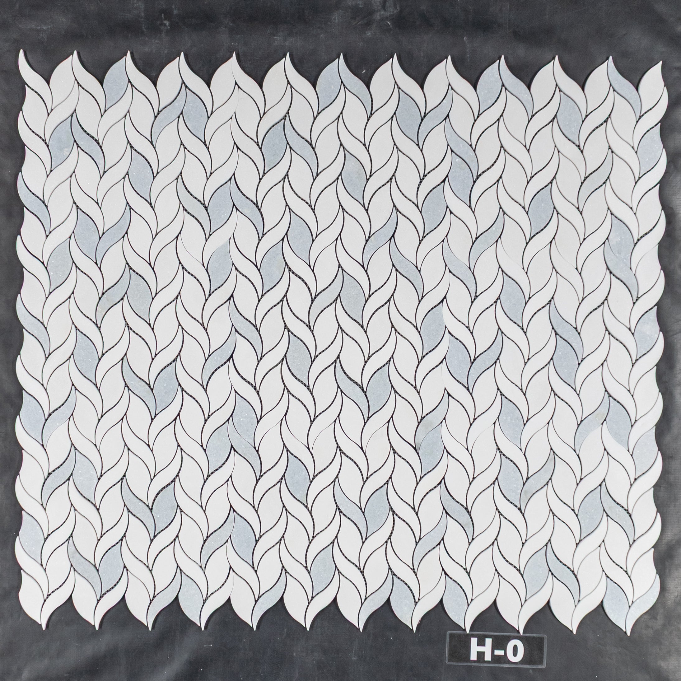 White Thassos Petal with Blue Celeste Mosaic Honed