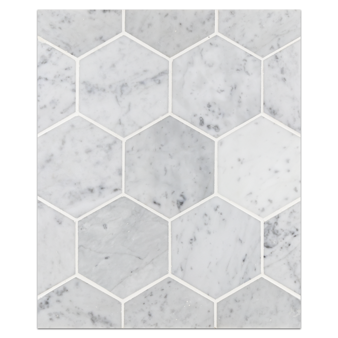 Mosaico hexagonal Bianco Carrara de 5" pulido