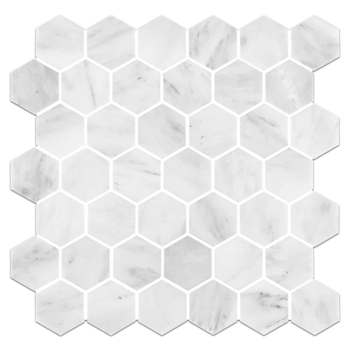 AM8612H - Mosaico hexagonal blanco perla de 2" pulido