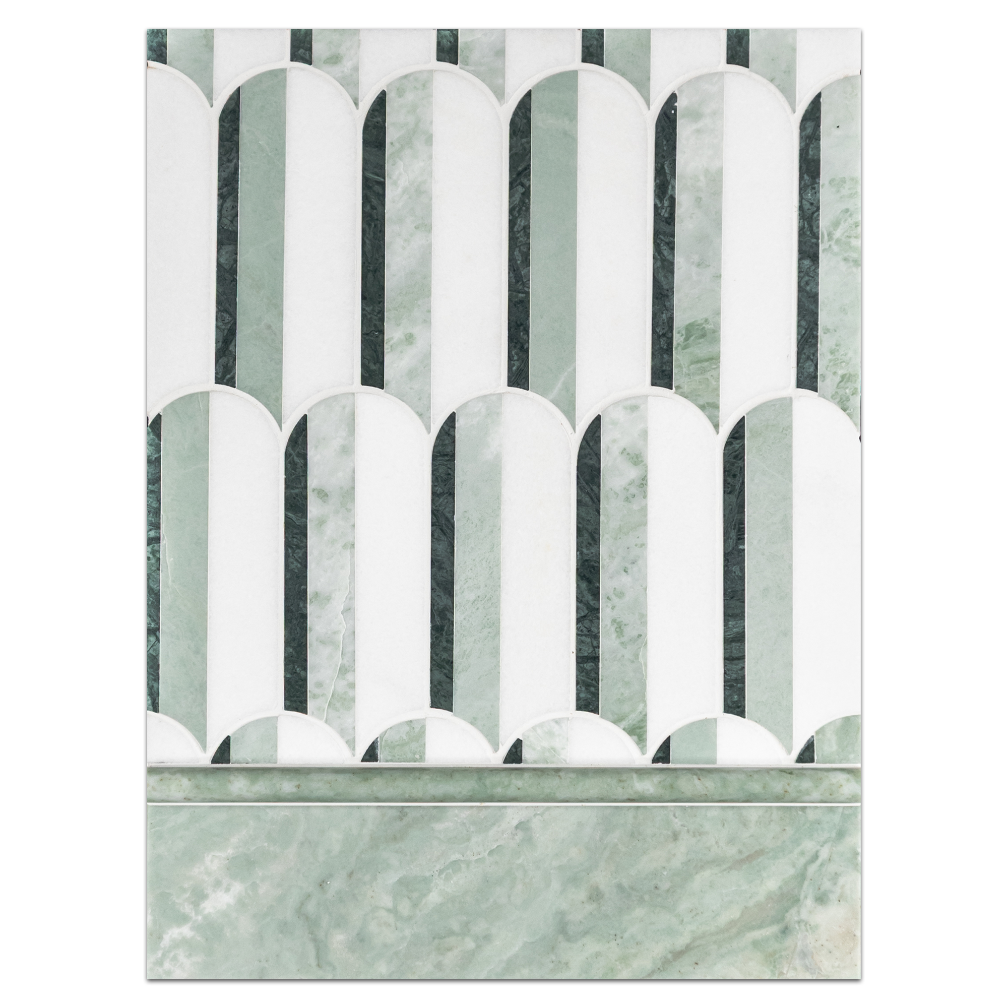 - Notte Verde, Emerald Green & White Thassos Tri-Blend Wave Mosaic Honed