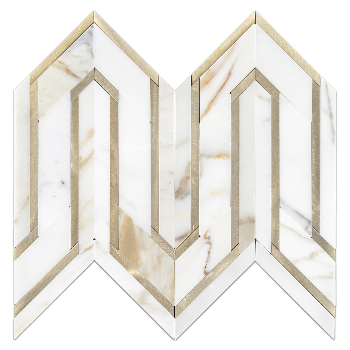 AM1128P - Serpentina Calacatta con Mosaico de Aluminio Dorado Pulido