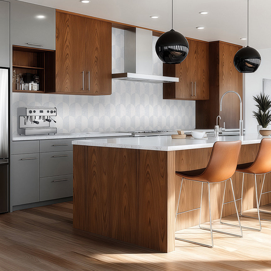 Mosaico azul celeste y blanco Thassos Dual Curvosa pulido