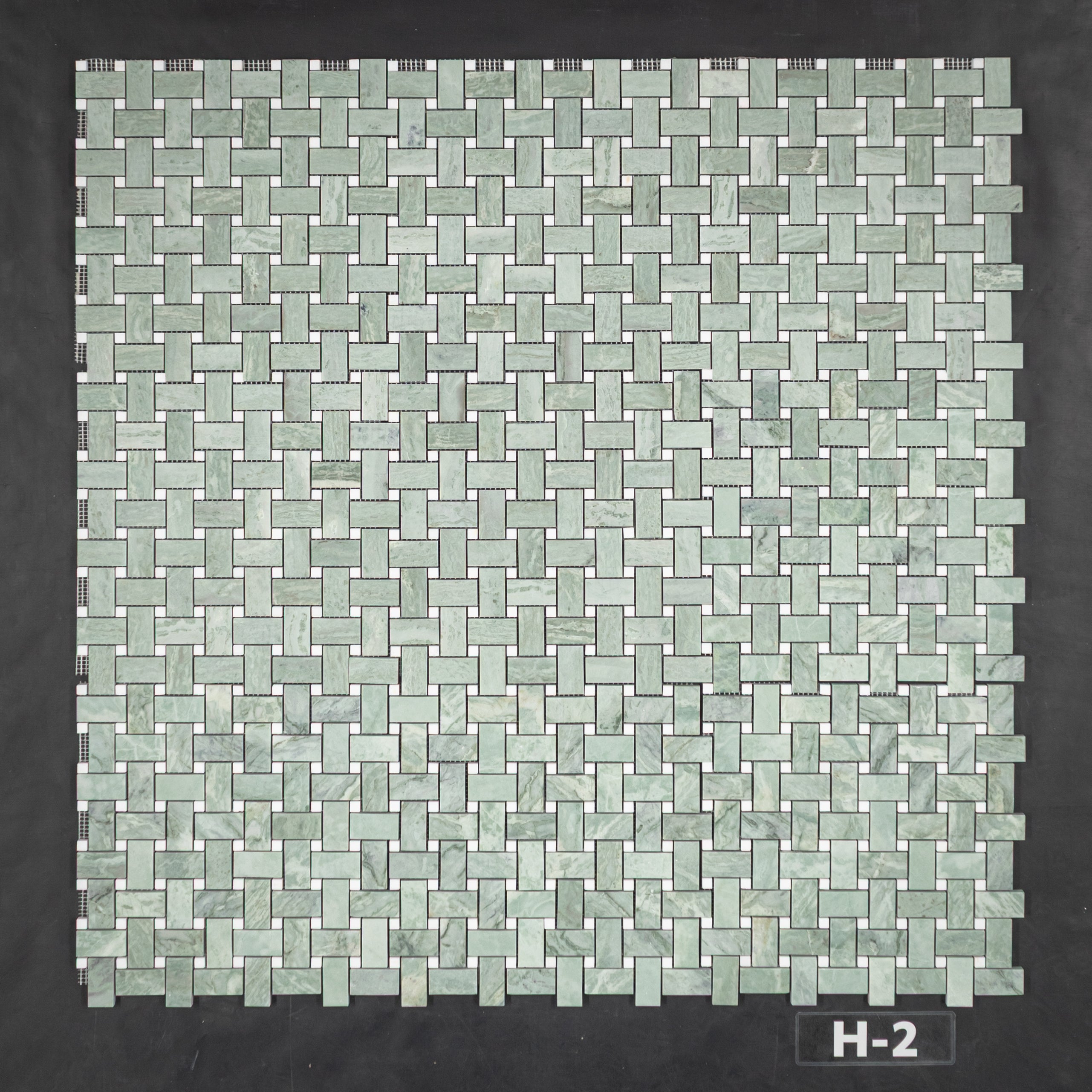 Emerald Green Basketweave with 3/8" White Thassos Dot Mosaic Honed