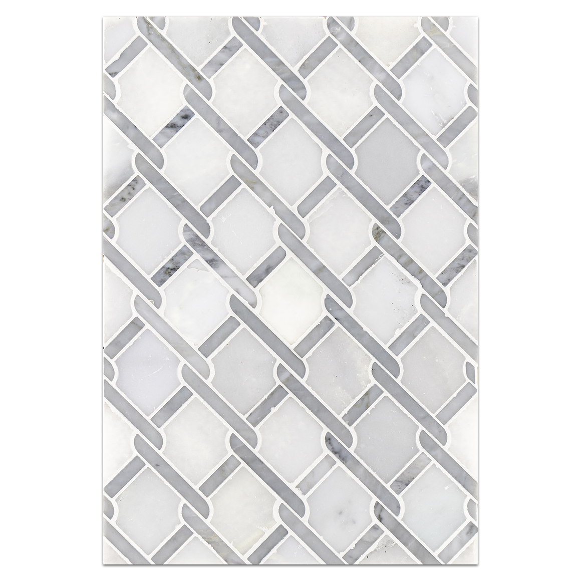 Blanco Absolute Argyle con mosaico de barra Bianco Carrara pulido