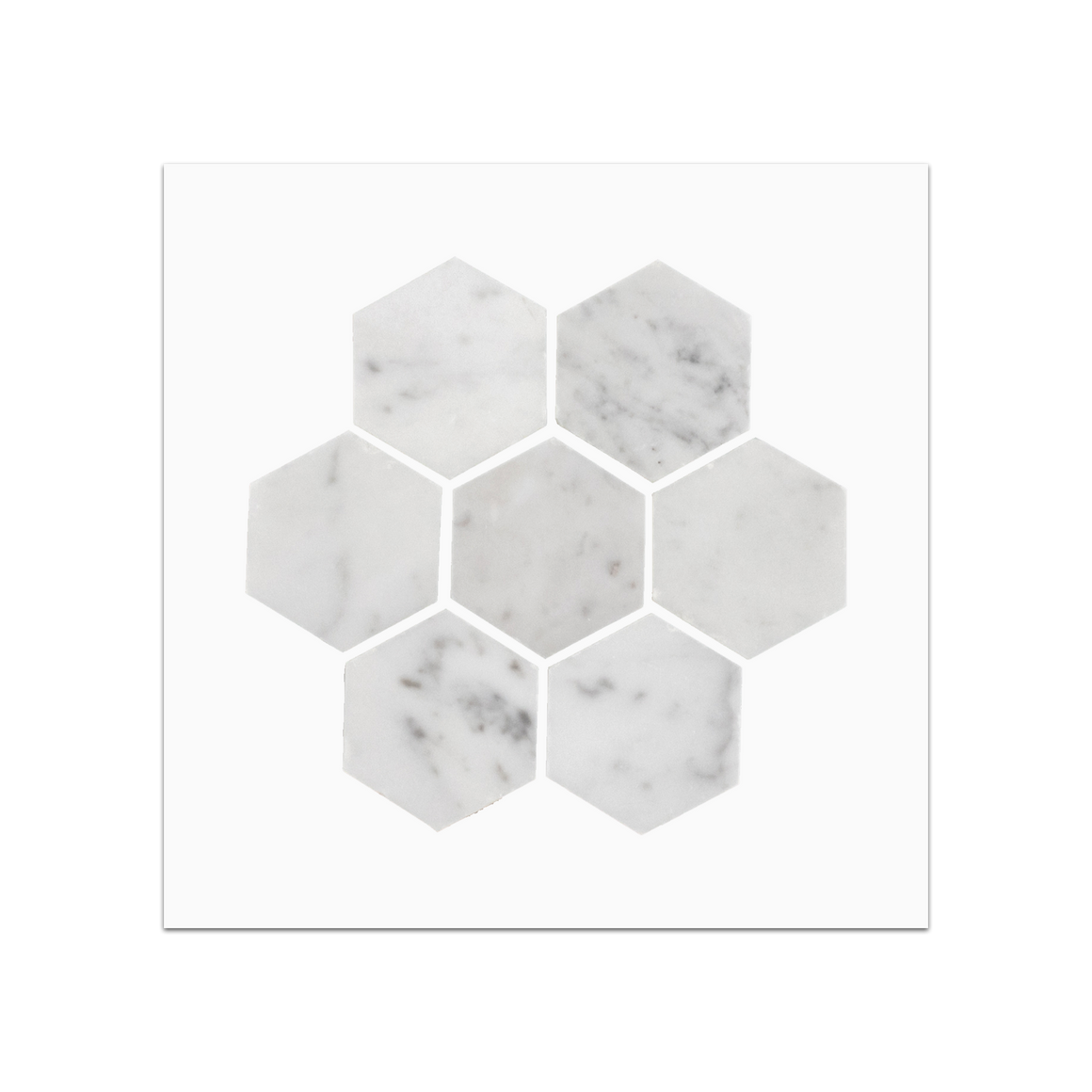 Mosaico hexagonal Bianco Carrara de 2" pulido