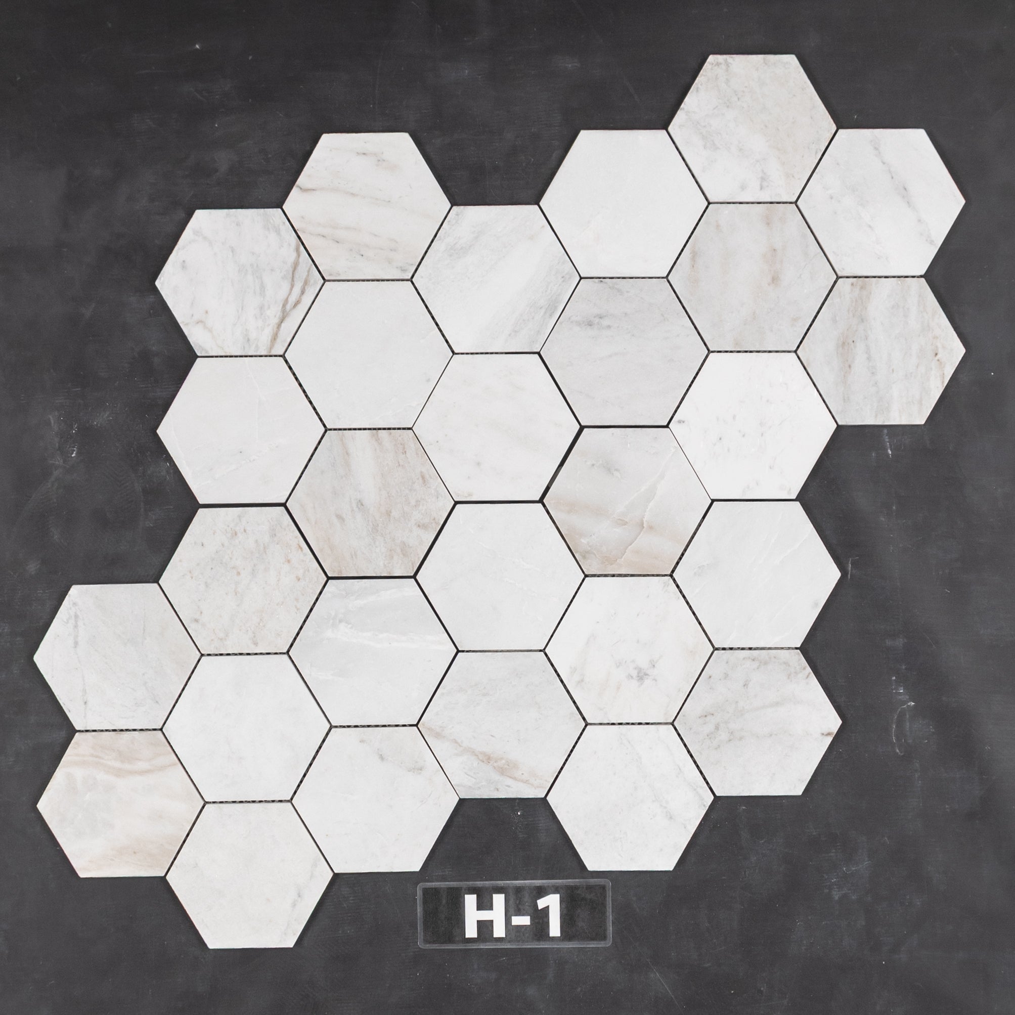 Bianco Oro Mosaico hexagonal de 5" pulido