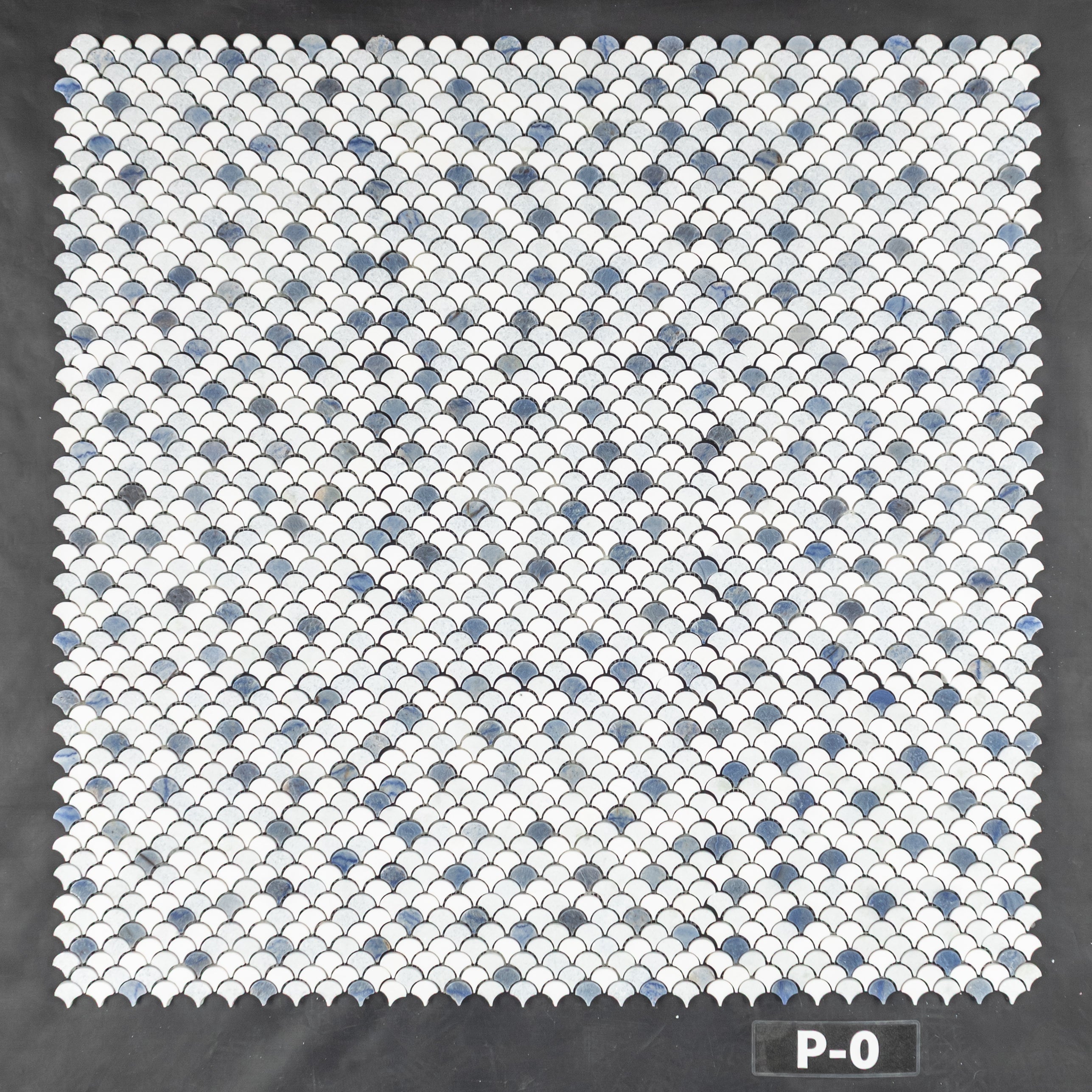 Abanico Tri-Blend (Azul Celeste, Azul Macauba y White Thassos) Mosaico Pulido