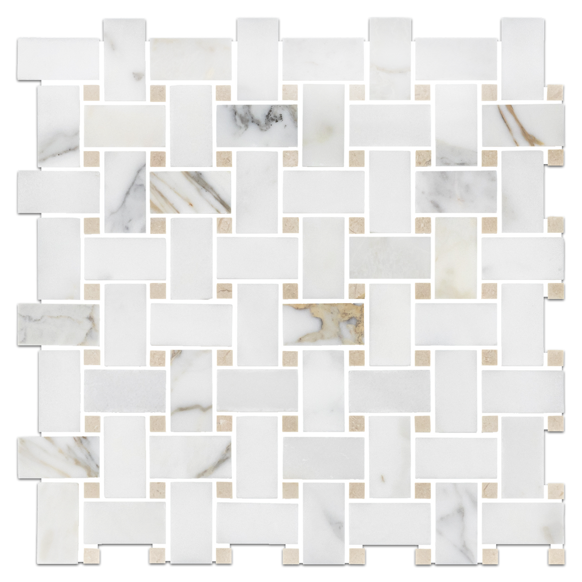 AM9089H - Tejido de cesta Calacatta con mosaico de puntos Crema Marfil de 3/8" pulido