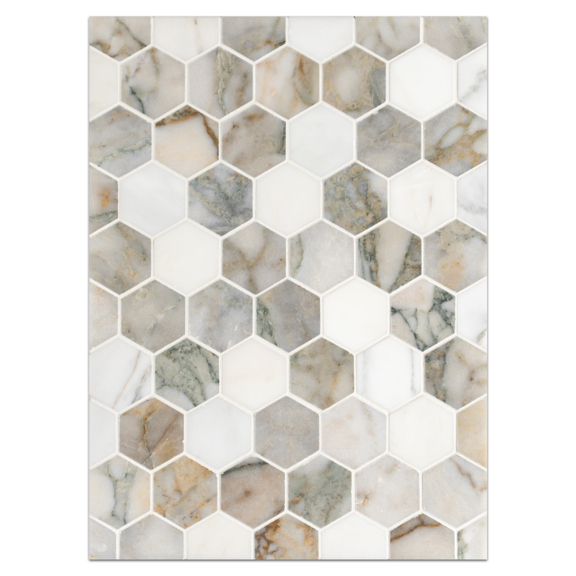 Calacatta Green 2" Hexagon Mosaic Honed