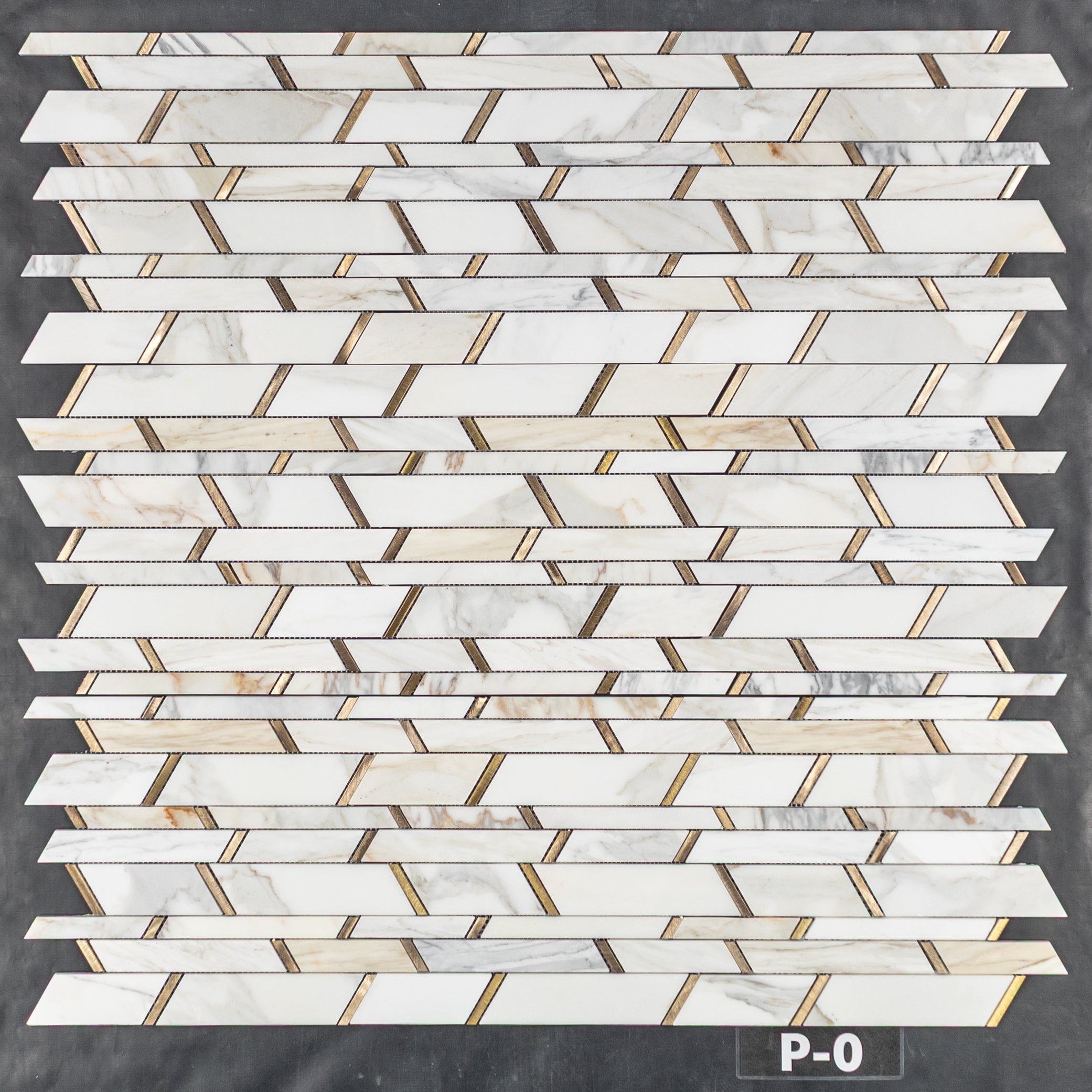 Tira aleatoria Calacatta Gold con mosaico de aluminio dorado pulido